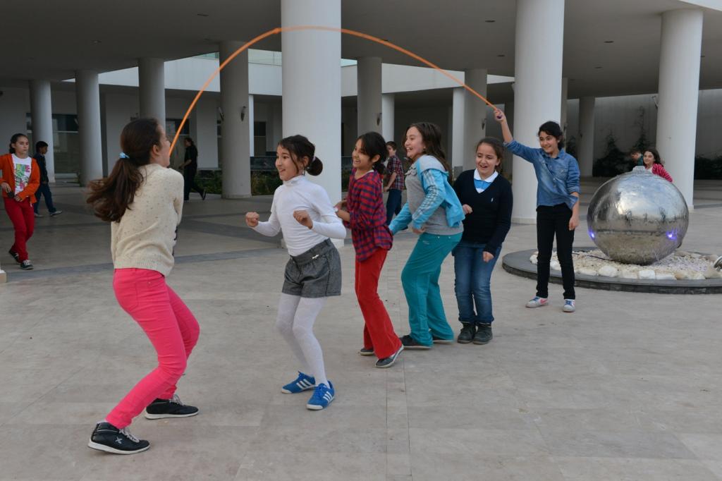 Yoğun ders saatleri arasında, rahat bir nefes almak için belediye hizmet binası avlusuna çıkan öğrenciler ip atlıyor, top oynuyor. Geçtiğimiz aylarda hayata geçirilen “Dersleri Destekleme Projesi” kapsamında eğitim gören öğrenciler, yoğun geçen ders saatleri arasında belediye hizmet binası avlusunda, gönüllerince koşup eğleniyor.