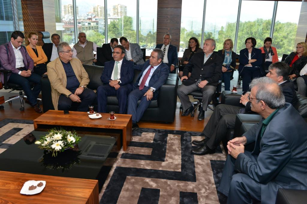 Deniz Baykal ve heyetinin ziyaretleri sırasında ATSO Başkanı Çetin Osman Budak’ında rast gelmesini memnuniyetle karşılayan Başkan Muhittin Böcek, seçimlerin geride kaldığını belirterek Konyaaltı’nda hizmet döneminin başladığını söyledi.