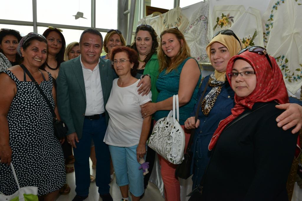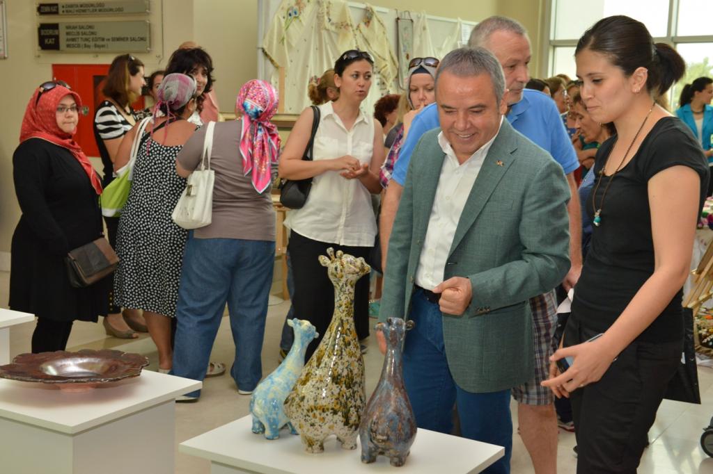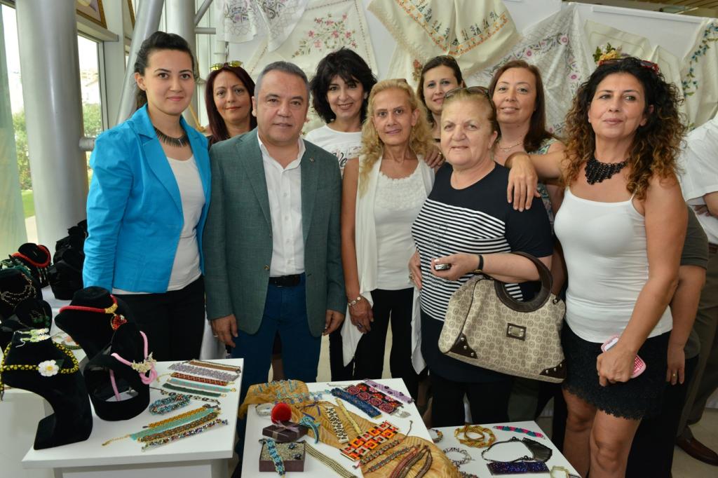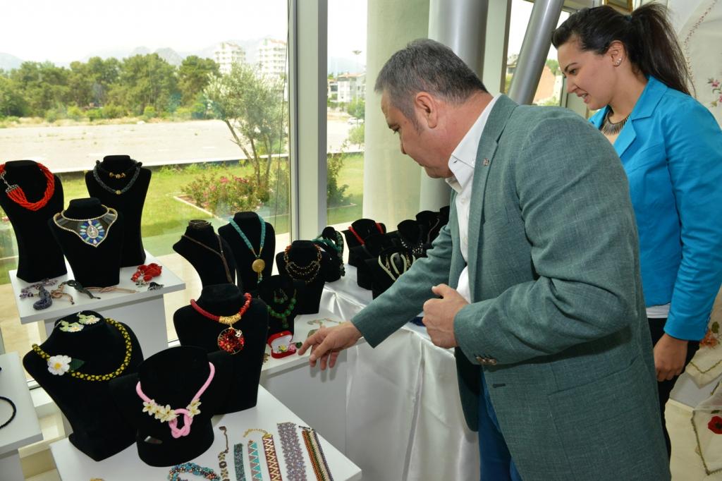 “Konyaaltı Belediyesi fuaye alanında sergilenen el emeği çalışmaların, kursiyerlerin bir yıl da ortaya koyduğu emeğin ürünleri.” diyen Başkan Böcek, yaklaşık iki yıl gibi kısa bir süre içinde 7 bin 200 kişiyi meslek ve sanat eğitimi kurslarından mezun ettiklerini söyledi. Başkan Böcek, burada eğitim gören özellikle ev hanımlarının gerek psikolojik gerek ise sosyolojik anlamda deşarj olduklarını ifade etti. Bunun yanı sıra hanımların, kurslarda yapmış oldukları ürünleri satarak ev ekonomilerine katkı sağladıklarını bildirdi.