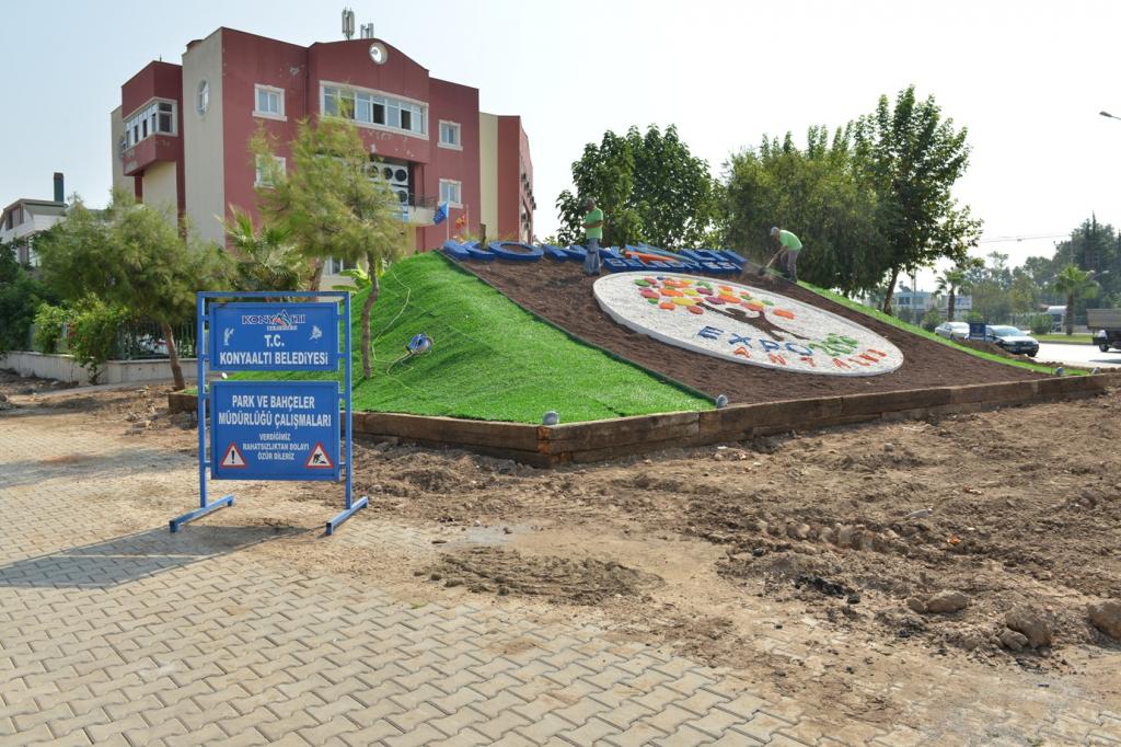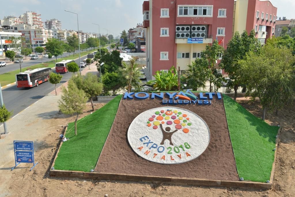 Atatürk Bulvarı ile Akdeniz Bulvarı kesişiminde bulunan 500 metrekare alan içersine dolamit, tüf ve renkli mozaik taş kullanılarak oluşturulan Expo 2016 logosu, kentin girişinde büyük ilgi görüyor. Çit çim malzemesiyle kaplanan ve etrafı traverslerle çevrilerek estetik bir görünüm kazandırılan logo Konyaaltı’nın, Antalya Expo 2016’ya hazır olduğunu da gösteriyor.