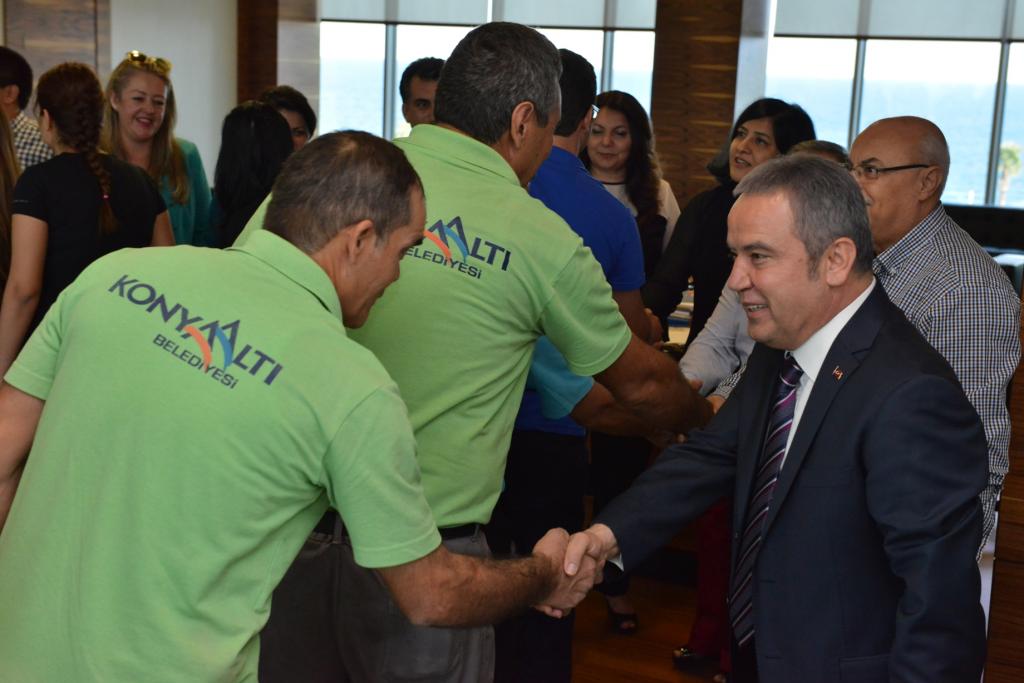 Başkan Böcek bayramların, gönüllerin birbirine daha çok yaklaştığı, sevginin, saygının, barışın ve kardeşliğin çok daha farklı bir şekilde hissedildiği güzel zamanlar olduğunu söyledi. Konyaaltı Belediyesi olarak halkına hizmet götüren bir aile olduklarının altını çizen Böcek,“Personelimizle bayramlaşmanın mutluluğunu yaşadık. Hepimizin gözleri pırıl pırıldı. Hepimizin yüzleri cıvıl cıvıldı. Allah, bu mutluluğumuzu, birlik ve beraberliğimizi daim etsin.” dedi.