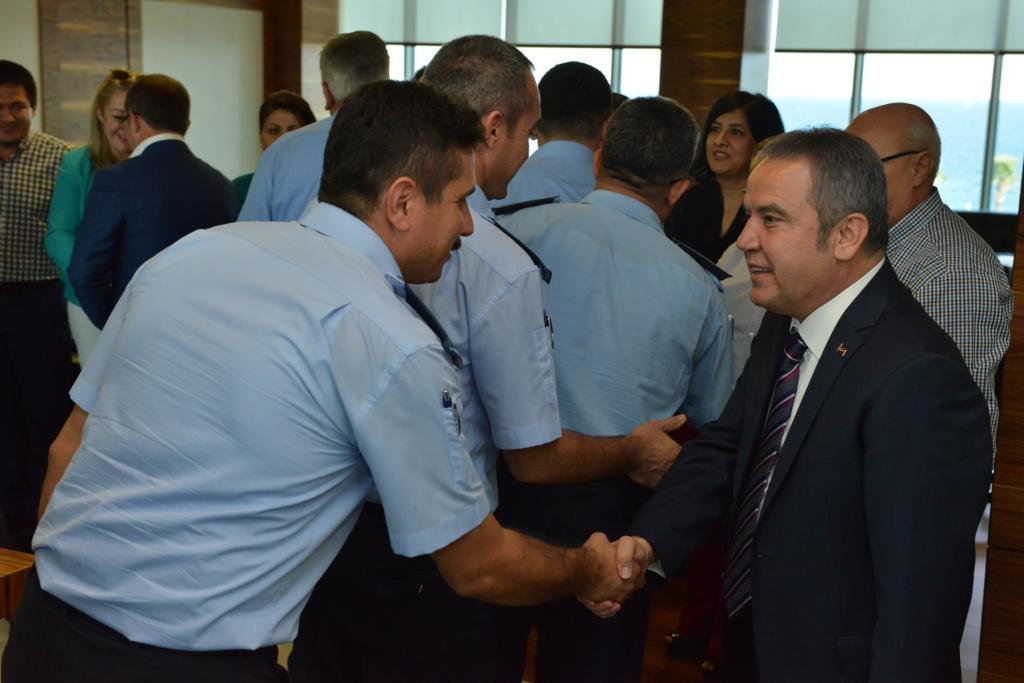 Konyaaltı Belediyesi’nin geleneksel bayramlaşma töreni, başkanlık makamında yapıldı. Bayramlaşma törenine Başkan Muhittin Böcek, başkan yardımcıları, birim müdürleri ve memur, sözleşmeli, işçi ve belediyeye bağlı şirketlerde çalışan personel katıldı. Başkan Böcek, başkan yardımcılarıyla birlikte tüm çalışanlarının tek tek Kurban Bayramı’nı kutladı.