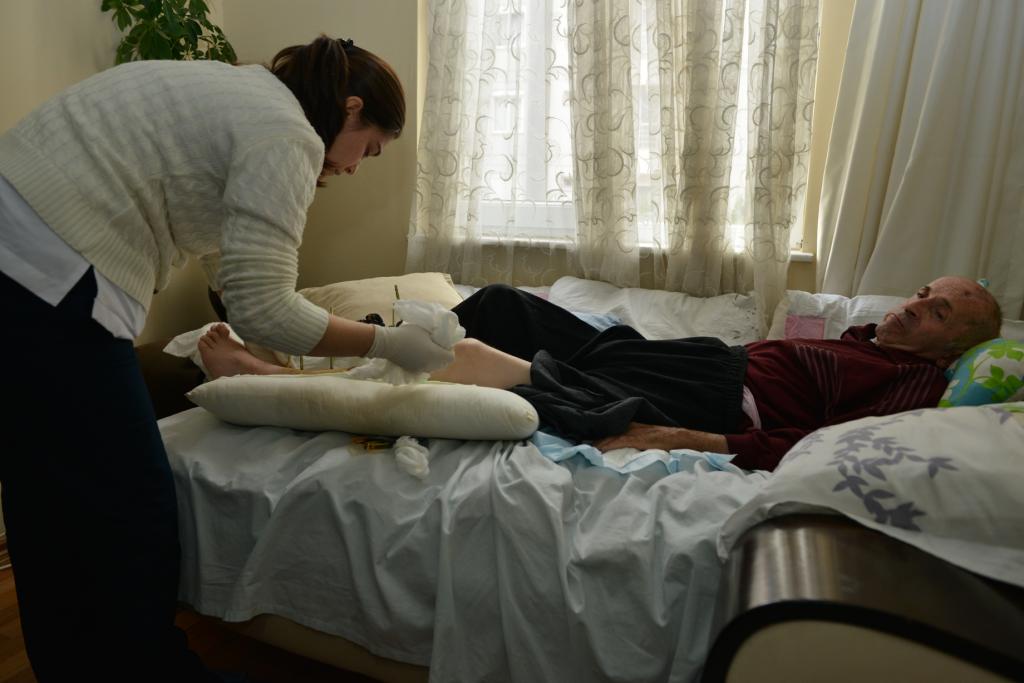 66 yaşında olan Şeref Çetinkaya, her gün düzenli olarak evine gelen belediye de görevli sağlık ekipleri tarafından kontrol ediliyor. Konyaaltı Belediyesi bünyesinde görevli tıp teknisyeni, Şeref Çetinkaya’nın günlük alması gereken ilaçlarını kontrol ediyor ve varsa eğer yapılması gereken enjeksiyonu yapıyor. Ameliyat yarası ise düzenli olarak pansuman ediliyor. Bununla birlikte hastanın vücut temizliği gibi temel ihtiyaçları da yine görevliler tarafından özenle yapılıyor. Sağlık kurumunda sürdürülen tedavisi içinse tam teşekküllü engelli nakil aracıyla hastaneye ulaştırılıyor.