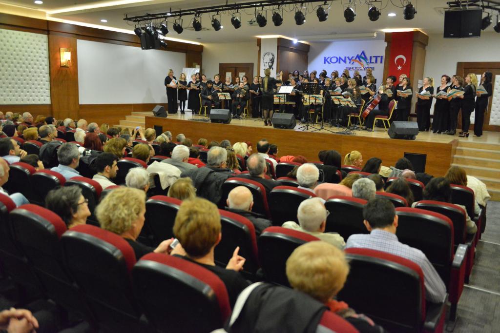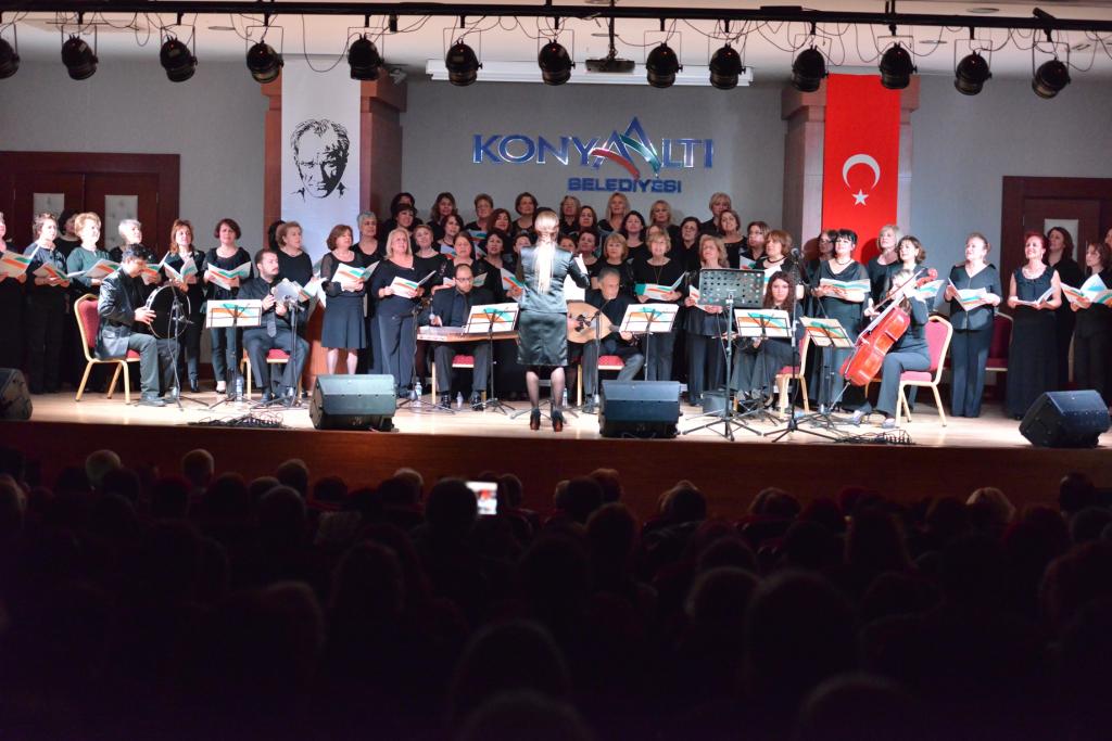 Etkinliklerin akşamındaysa Konyaaltı Belediyesi’nin 60 kişiden oluşan Türk Sanat Müziği Kadınlar Korosu sahne aldı. İlk konserlerini 8 Mart Dünya Kadınlar Günü’nde, kadınlara özel bir günde veren Türk Sanat Müziği Kadınlar Korosu, uşşak, nihavent ve hicaz makamlarında 14 eser seslendirdi. Zehra Özçelik’in şefliğinde sahne alan kadın korosu, Konyaaltı Belediyesi Feslikan Salonu’nda muhteşem bir konser ile vatandaşları mest etti