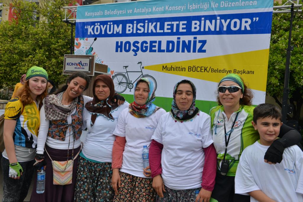 Konyaaltı Bölgesi Sürdürülebilir Eko-Turizm Projesi kapsamında düzenlenen “Köyüm Bisiklete Biniyor” etkinliğine Konyaaltı Belediyesi Başkan Yardımcısı Mustafa Gürbüz, Kent Konseyi Genel Sekreteri Şerafettin Sayar, Antalya Kent Konseyi Gençlik ve Spor Çalışma Grubu Başkanı Recep Şengün, Çakırlar ve Doyran bölge muhtarlarıyla Antalya’da ki çok sayıda bisiklet grupları katıldı. Etkinliğe şalvarlarıyla katılan köylü kadınları, profesyonel bisiklet kullanıcılarıyla birlikte davul zurna eşliğinde halay çekerek renkli görüntüler oluşturdu. “Köyüm Bisiklete Biniyor” etkinliği, otomobil ve motosikletli jandarma ekiplerinin gözetiminde, Çakırlar merkezinden başladı.