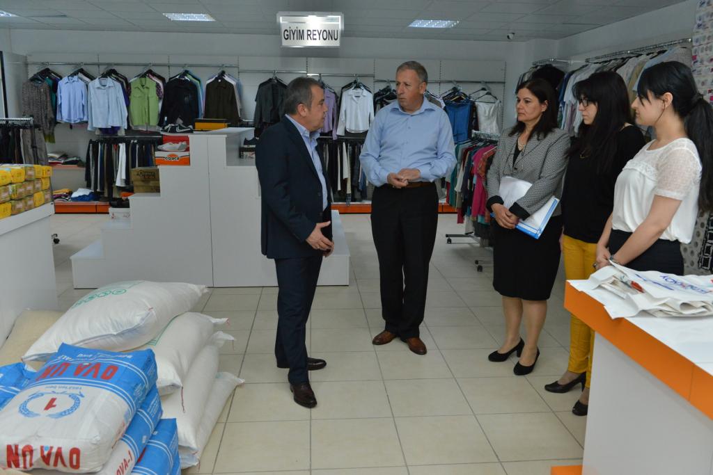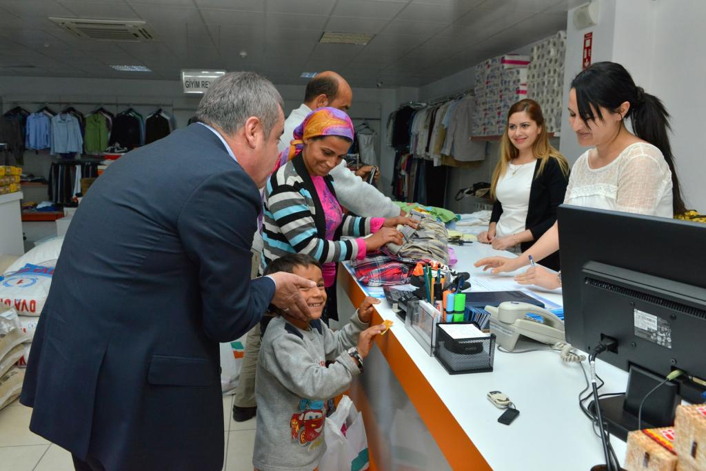 İlk olarak Gıda ve Giyim Bankası bölümlerini ziyaret eden Başkan Böcek burada, maddi anlamda yardıma ihtiyacı olduğu resmi kurumlarca belirlenen kişilere gıda ve giyim yardımı yaptıklarını söyledi. Bu kişilerin adlarına hazırlanmış KONKART’a her ay 150 ile 250 lira arasında para yüklediklerini ve bu parayı market bölümünde diledikleri gibi harcadıklarını ifade eden Başkan Böcek, “Dinimizin de belirttiği gibi bu yöntemle yaptığımız yardımlarda, sağ elin verdiğini sol el görmüyor”. diye konuştu.