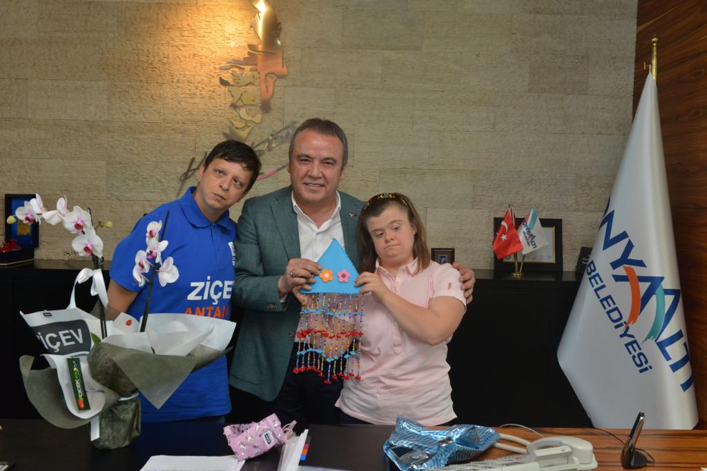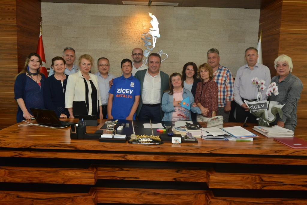 Zihinsel Yetersiz Çocukları Yetiştirme ve Koruma Vakfı (ZİÇEV)’nın engel tanımaz öğrencileri, Konyaaltı Belediye Başkanı Muhittin Böcek’i makamında ziyaret etti.