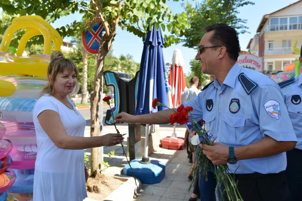 Konyaaltı Belediyesi Zabıta Müdürlüğü ekipleri, daha sonra esnafa ve vatandaşa karanfil dağıttı. Elinde çiçekle zabıta ekiplerini gören vatandaşlar kısa bir şaşkınlık yaşarken, zabıtanın bu davranışını takdirle karşıladı. Zabıta Teşkilatı’nın 189. yılı olduğunu öğrenen esnaf ve vatandaşlarda zabıta ekiplerini kutladı.