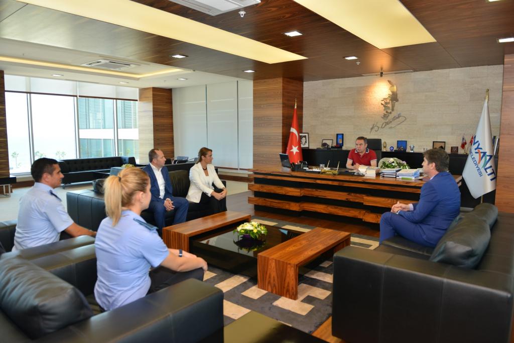 Başkan Muhittin Böcek; Zabıta Haftası etkinlikleri kapsamında Konyaaltı Belediyesi Başkan Yardımcısı Cansel Çevikol, Konyaaltı Belediyesi Zabıta Müdürü Arif Küçük ve zabıta personelini makamında ağırladı. Zabıta Teşkilatı’nın 189. yılını kutlayan Konyaaltı Belediye Başkanı Böcek, Konyaaltı Belediyesi Zabıta Müdürlüğü ekiplerinin çalışmalarından vatandaşın son derece memnun olduğunu söyledi.