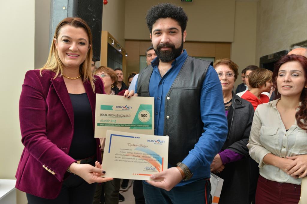 8 Mart Dünya Kadınlar Günü’ne özel üç ayrı dalda yarışma düzenleyen Konyaaltı Belediyesi, yarışmaya katılan eserleri belediye fuaye alanında sergiye çıkardı. Çok sayıda sanatseverin hazır bulunduğu sergi alanında dereceye giren eser sahiplerine katılım belgeleri ve ödülleri verildi.