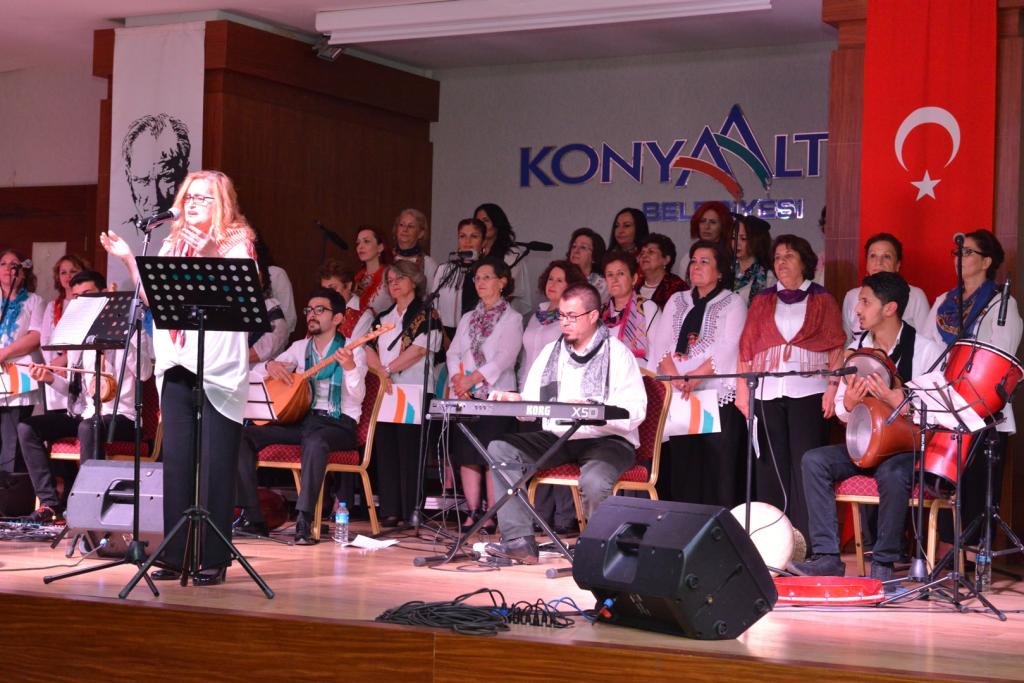 Konyaaltı Belediyesi Türk Halk Müziği Kadınlar Korosu, gerçekleştirdiği konserler ile sanatseverleri bir araya getiriyor. Konyaaltı Belediyesi Feslikan Salonu’nda düzenlenen konser vatandaşlardan yoğun ilgi gördü. Yiğit Aktı şefliğinde gerçekleşen konserde THM Kadınlar Korosu, Anadolu’nun dört bir yanından seçkin türküleri seslendirdi. ‘Karinom’, ‘Ander Sevdaluk’, ‘Olmaz Olmaz’, ‘Suya Gider Allı Gelin’ gibi birbiriden güzel 16 türkünün seslendirildiği konserde türkü severler unutulmaz bir gece yaşadı. İki saat süren konserde vatandaşlar zaman zaman türkülere eşlik ederken, THM Kadınlar Korosu performansı ile izleyenlerden büyük beğeni topladı.