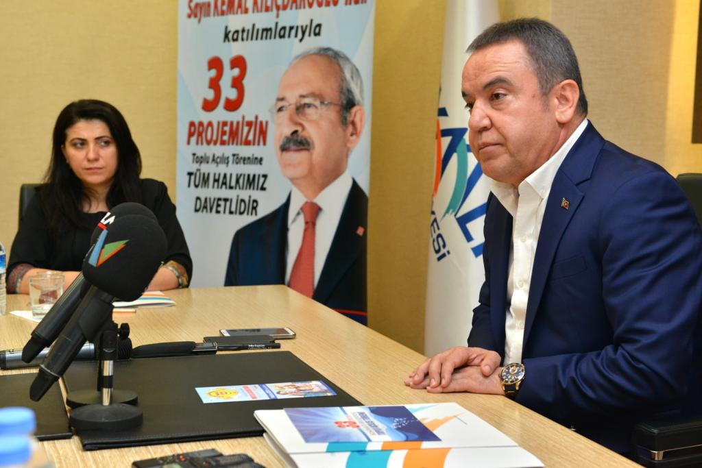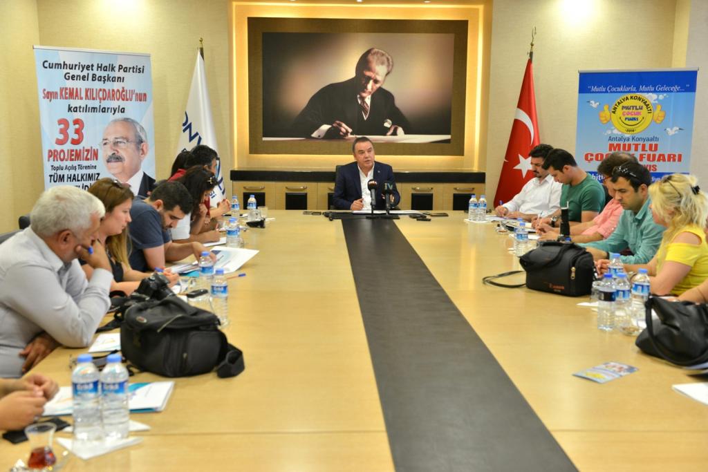 Konyaaltı Belediye Başkanı Muhittin Böcek, 19 Mayıs Perşembe günü açılışı yapılacak olan Antalya Konyaaltı Mutlu Çocuk Fuarı ve 22 Mayıs Pazar günü 33 projenin açılışının yapılacağı toplu açılış töreniyle ilgili basın toplantısı düzenledi.