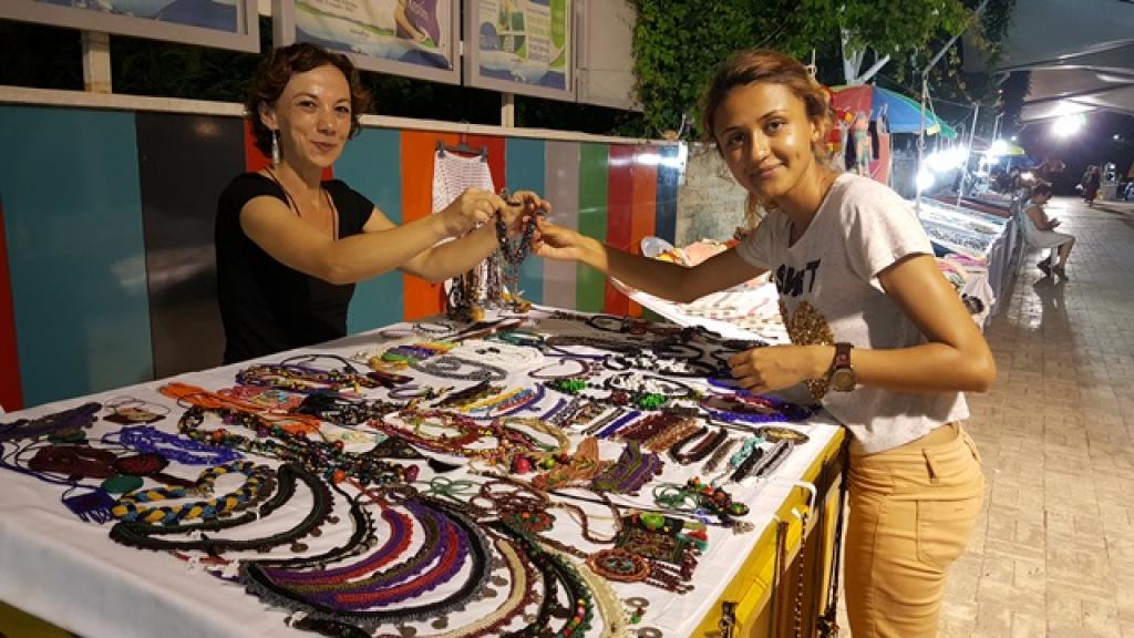 45 STANTTA KADIN EL EMEĞİ PAZARI Haftanın her günü akşam saat 05:00 ile 11:00 arasında ziyarete açık olan Kadın El Emeği Pazarı’nda 45 stant bulunuyor. Pazarda mefruşat, hediyelik eşya, ev yemeği gibi birçok ürün satışa sunuluyor.