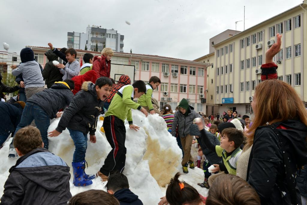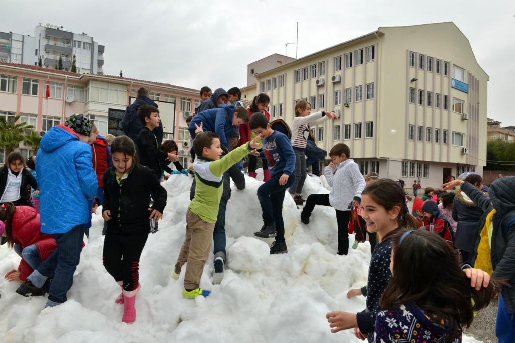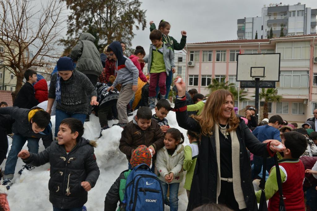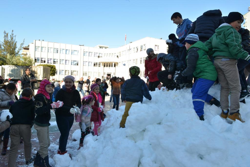 Öğrenciler en çok öğretmenlerini hedef alması da ilginç görüntülerin yaşanmasına sahne oldu. Birçoğu ilk kez kar gören çocukların ise sevincine diyecek yoktu. Çok eğlendiklerini ifade eden çocuklar böylesi bir sevinci yaşattığı için Konyaaltı Belediye Başkanı Muhittin Böcek’e teşekkür etti.