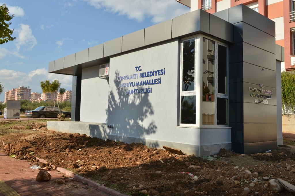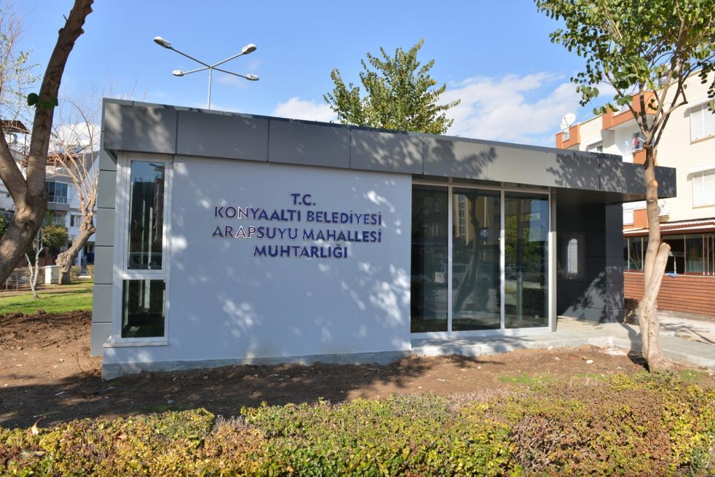 Geçtiğimiz aylarda Uncalı Mahallesi’nde yapımı tamamlanan muhtar evini hizmete açan Konyaaltı Belediyesi, şimdi de Arapsuyu, Toros, Akkuyu ve Liman Mahalleleri’nde muhtarevi yapımını tamamladı. 50 metrekare büyüklüğünde olan; içersinde bir muhtar odası, bekleme salonu, mutfak ve engelli vatandaşlarında kullanımına uygun tuvaletlerin bulunduğu muhtarevleri 60 bin liraya mal oluyor.
