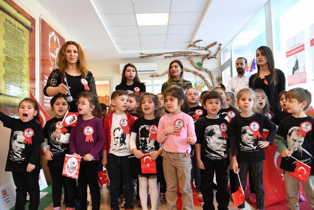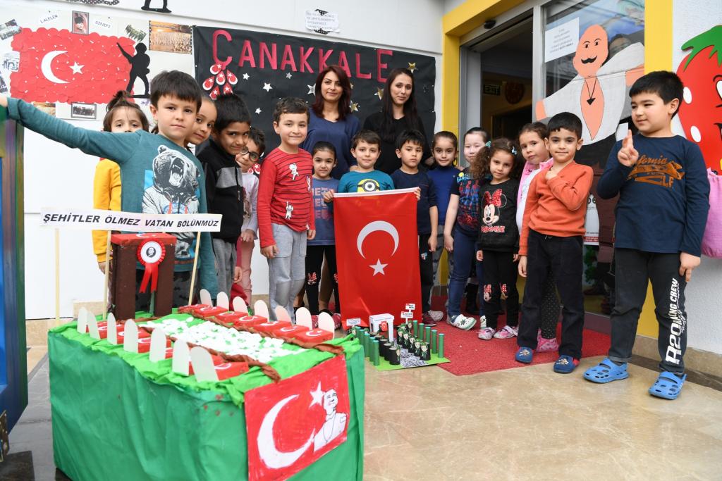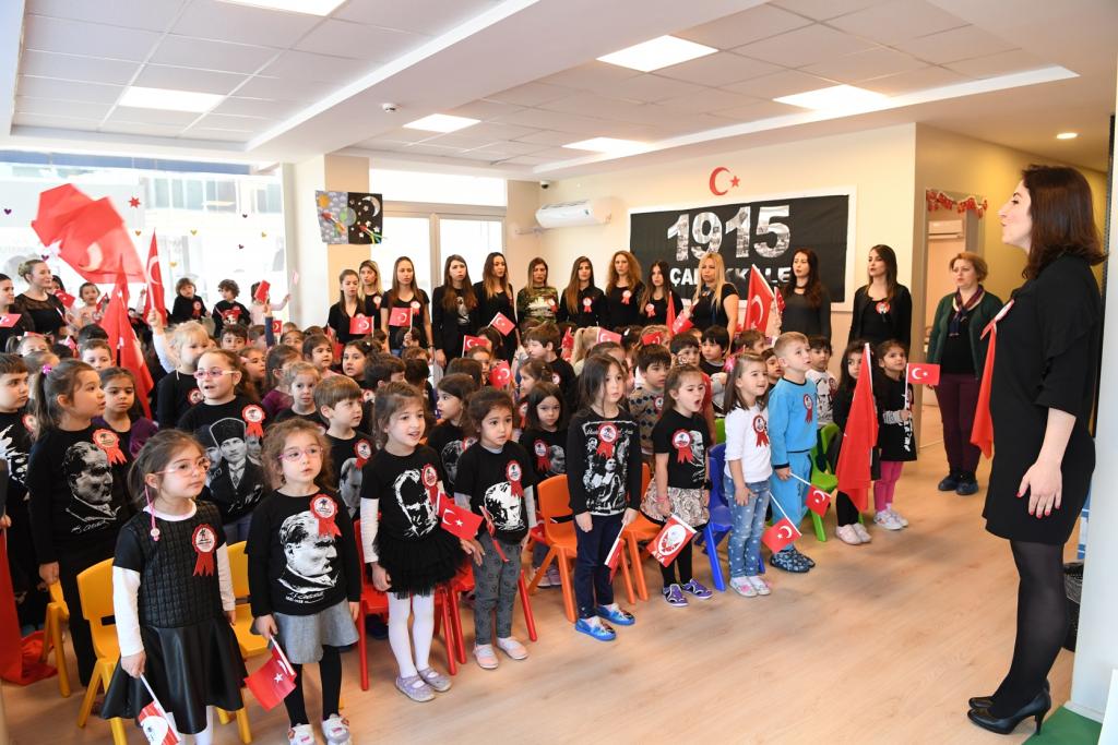 Kreş öğretmenleri, öğrencilerine 18 Mart Şehitleri Anma Günü ve Çanakkale Deniz Zaferi’nin önemini anlattı. Daha sonra ise öğrenciler ‘Çanakkale içinde vurdular beni’ ve ‘Türklerin gemisi’ türkülerini seslendirdi. Tören sonunda ise minik öğrenciler, ellerinde bayraklar ile İzmir Marşı’nı söyleyerek bu anlamlı günde gerçekleştirdikleri örnek etkinliği de noktalamış oldular.