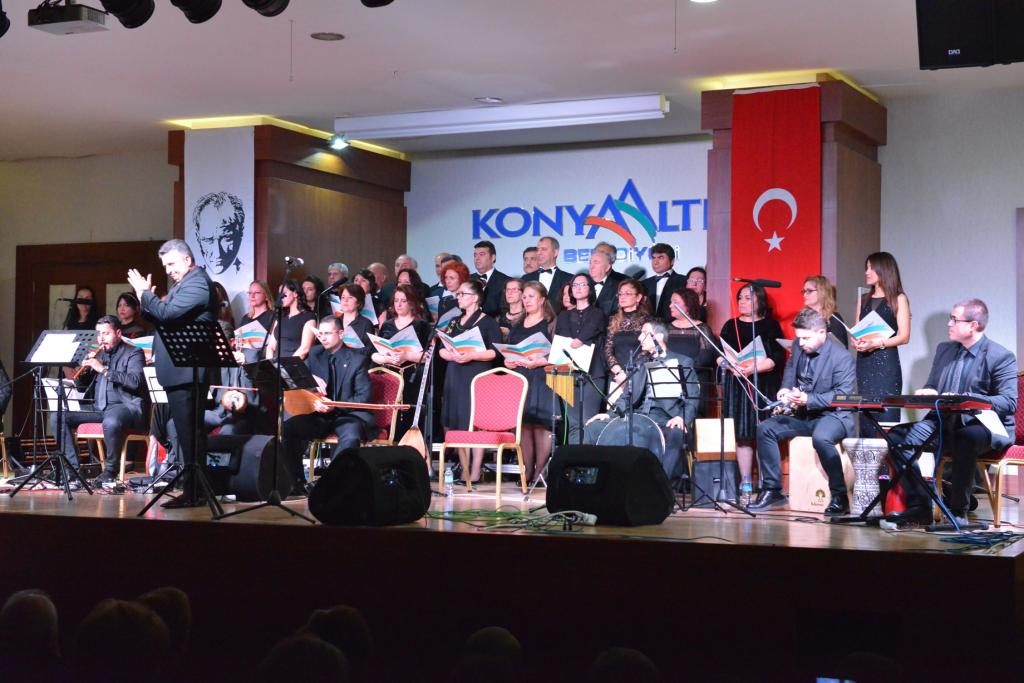 Ahmet Yiğit Aktı şefliğinde sahne alan Konyaaltı Belediyesi THM Korosu 18 parçadan oluşan iki bölümlük bir konser gerçekleştirdi. İki saat süren konserde THM Korosu, ‘Çanakkale içinde aynalı çarşı, Hoş gelişler ola Mustafa Kemal Paşa, Şu kışlanın kapısına, mail oldum yapısına ve Sarı zeybek şu dağlarda yaslanır’ gibi birbirinden değerli eserleri seslendirdi.