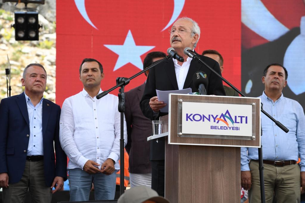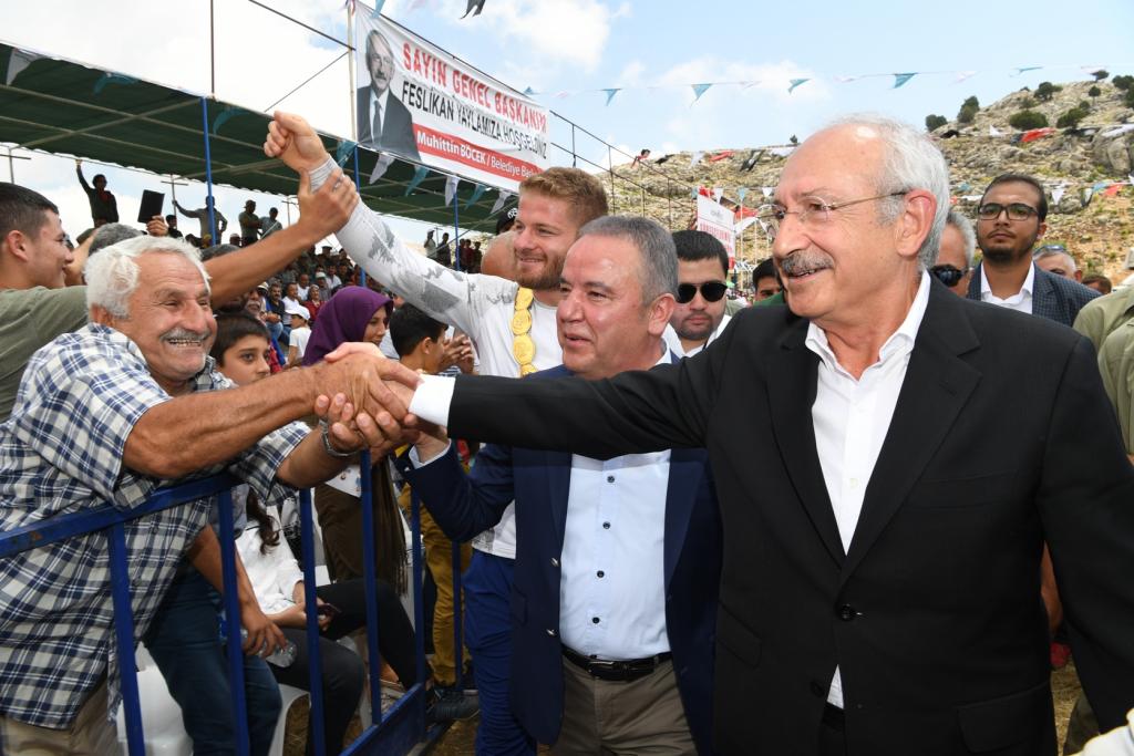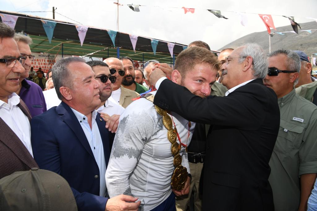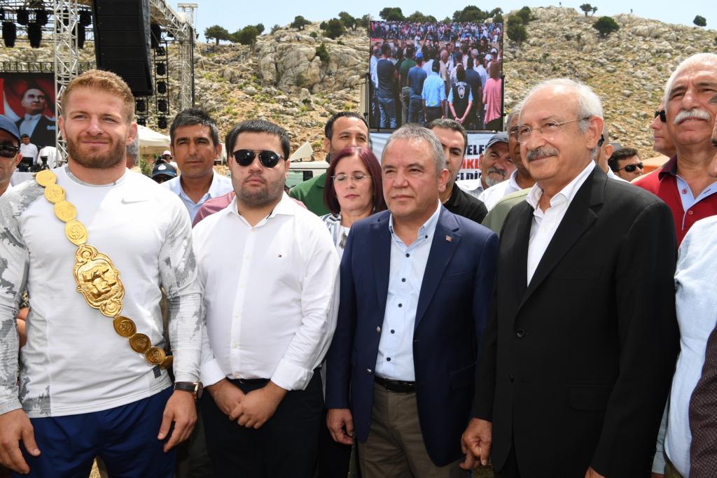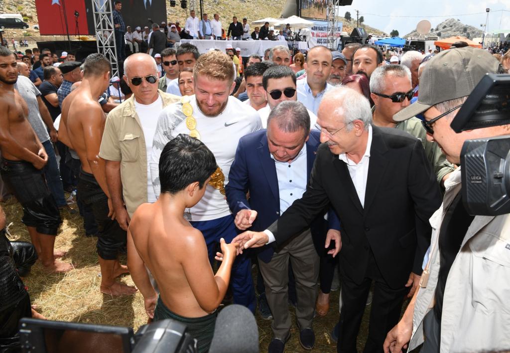 1853 rakım yüksekte, Feslikan Yaylası’nda tüm Türkiye’ye seslenen Kemal Kılıçdaroğlu, öncelikle er meydanında mücadele eden tüm pehlivanlara başarılar diledi. Ata sporuna verdiği destekten ötürü Başkan Muhittin Böcek’e teşekkür eden Kemal Kılıçdaroğlu, yağlı güreşlerin Dede Korkut destanları, Oğuz Türkleri, Selçuklu, Osmanlı ve son olarak Türkiye Cumhuriyeti ile devam ettiğine ve edeceğine dikkat çekti.