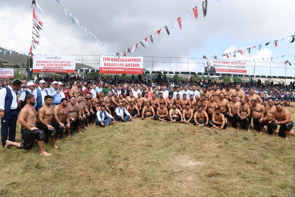 Konyaaltı Belediyesi tarafından bu yıl 20.si düzenlenen Feslikan Yaylası Yaz Şenlikleri’nde 54’ü başpehlivan toplam 900 güreşçi er meydanına çıktı. Feslikan Yaylası’nda Konyaaltı Belediye Başkanı Muhittin Böcek’in ev sahipliğinde gerçekleştirilen etkinliğe, CHP Genel Başkanı Kemal Kılıçdaroğlu, Antalya Valisi Münir Karaloğlu, CHP Genel Başkan Yardımcısı ve Antalya Milletvekili Çetin Osman Budak, CHP Antalya Milletvekili Devrim Kök, CHP Tokat Milletvekili Kadim Durmaz, belediye başkanları meclis üyeleri, parti ve sivil toplum kuruluşların temsilcileri ile binlerce vatandaş katıldı.