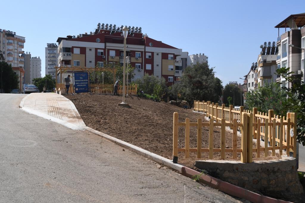 Pınarbaşı Mahallesi 715-720 sokak kesişiminde bulunan park alanını kamulaştırarak mülkiyet sorununu çözen Konyaaltı Belediyesi, geçtiğimiz günlerde bin 400 metrekare alanda park yapım çalışmalarına başladı. İlk olarak taştan örme istinat duvarı ve ahşap çitlerle parkın sınırını belirleyen Konyaaltı Belediyesi Park ve Bahçeler Müdürlüğü, park içerisinde doğal dokuyu da koruyor. Engellilere uyumlu yürüme yolları, çocuk oyun alanı, oturma alanları ve piknik masalarının yer aldığı parkta, ağaçlandırma çalışmaları başlatıldı.