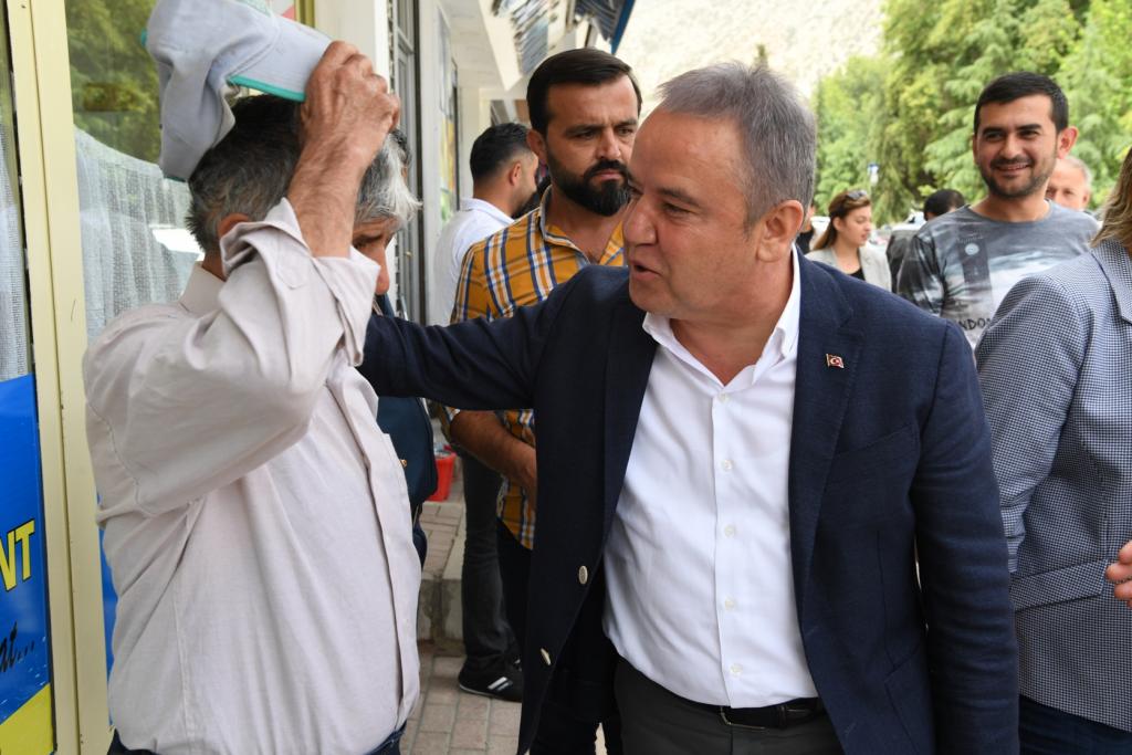 Konyaaltı Belediye Başkanı Muhittin Böcek, Korkuteli ve Elmalı’da bir dizi ziyaretlerde bulundu. İlk olarak CHP Korkuteli İlçe Yönetimini ziyaret eden Başkan Muhittin Böcek, burada CHP Korkuteli İlçe Başkanı Yıldıray Çıldır ve partililer tarafından karşılandı. Tek tek partililerle kucaklaşan Başkan Muhittin Böcek, Korkuteli İlçe Teşkilatı’nı yeni hizmet binasında ziyaret ederek hayırlı olması dileklerinde bulunmak istediklerini söyledi. Muhittin Böcek, CHP Korkuteli İlçe Başkanı Yıdıray Çıldır’a Atatürk’ün çerçeveli portre resmini hediye etti.