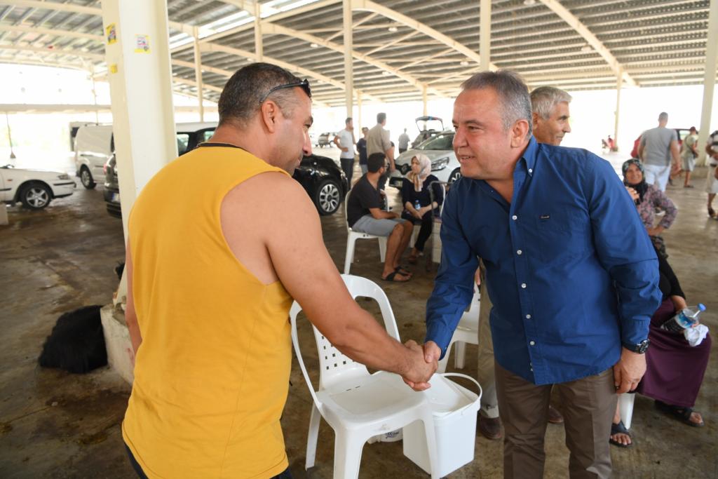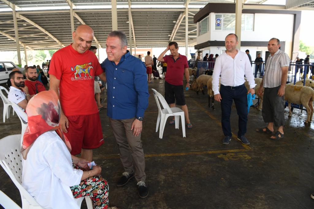Başkan Muhittin Böcek, daha sonra kurban kesmek için kesim yerine gelenleri ziyaret edip vatandaşlarla bayramlaşarak hatıra fotoğrafı çektirdi.