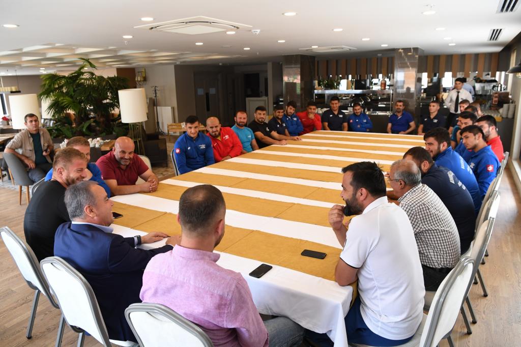 Korkuteli Gümüş Han Otel’de güreşçilerle bir araya gelen Konyaaltı Belediye Başkanı Böcek, geçtiğimiz yıl olduğunu gibi bu yıl da Tarihi Kırkpınar Yağlı Güreşleri’nde önemli başarılar elde edeceklerine inandığını söyledi. Başkan Böcek, “Başpehlivanlarımız bu yıl sıkı bir hazırlık dönemi geçiriyor. Bu sezon Kırkpınar öncesi gerçekleşen güreşlerde bir çok kez birincilik kürsüsüne çıktılar. Başpehlivanlarımız İsmail Balaban, Turan Balaban, Hasan Cengiz ve Sinan Kaya’dan önemli başarılar bekliyoruz. Korkuteli’nde güreşçilerimiz Kırkpınar’a hazırlanıyor. Altın kemeri bu yıl da Antalya’mıza getirmek istiyoruz.” dedi.