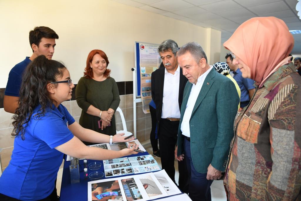 Öğrencilerle bir araya geldiğinde ayrı bir mutlu olduğunu belirten Başkan Muhittin Böcek, “Muhittin Mustafa Böcek Anadolu Lisesi Antalya’mızın en özel liselerinden biridir. Mehmet Akif Ersoy Köşesi ve İngilizce Sokağı çok güzel bir çalışma olmuş. Öğrencilerimiz okul koridorlarında gezinirken bile önemli bilgiler elde edebilecek. Her yıl TÜBİTAK Bilim Fuarı’nda çok özel projeler hazırlıyor. Bu yıl da 24 proje hazırlayan öğrencilerimizi kutluyorum” dedi.