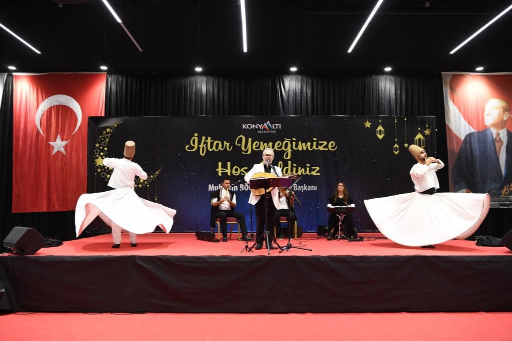Konyaltı Belediyesi çalışanları geleneksel iftar yemeğinde bir araya geldi. Konyaaltı Belediye Başkanı Muhittin Böcek’in ev sahipliğinde düzenlenen iftar yemeğine Konyaaltı Kaymakamı İbrahim Keklik, Cumhuriyet Halk Partisi (CHP) Konyaaltı İlçe Başkanı Onur Duruk, Konyaaltı Belediyesi Spor Kulübü Başkanı Ayhan Abay, Konyaaltı Belediyesi Başkan Yardımcıları, meclis üyeleri, muhtarlar, Antalya Konyaaltı Turizm Kültür ve Eğitim Vakfı (KONTEV) üyeleri, Batı Antalya Turizm Koruma ve Geliştirme Bölgesi Altyapı Hizmet Birliği (BATAB) üyeleri, sporcular, Konyaaltı Kaymakamlığı birim müdürleri ile Konyaaltı Belediyesi personeli katıldı. Tahir Çetin’in okuduğu ezan ile birlikte oruçlarını açan davetliler, tasavvuf müziği dinletisi ve semazen gösterisi eşliğinde iftarlarını yaptı.