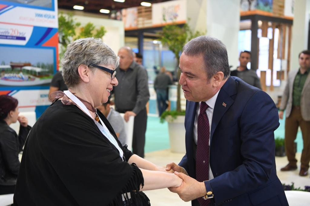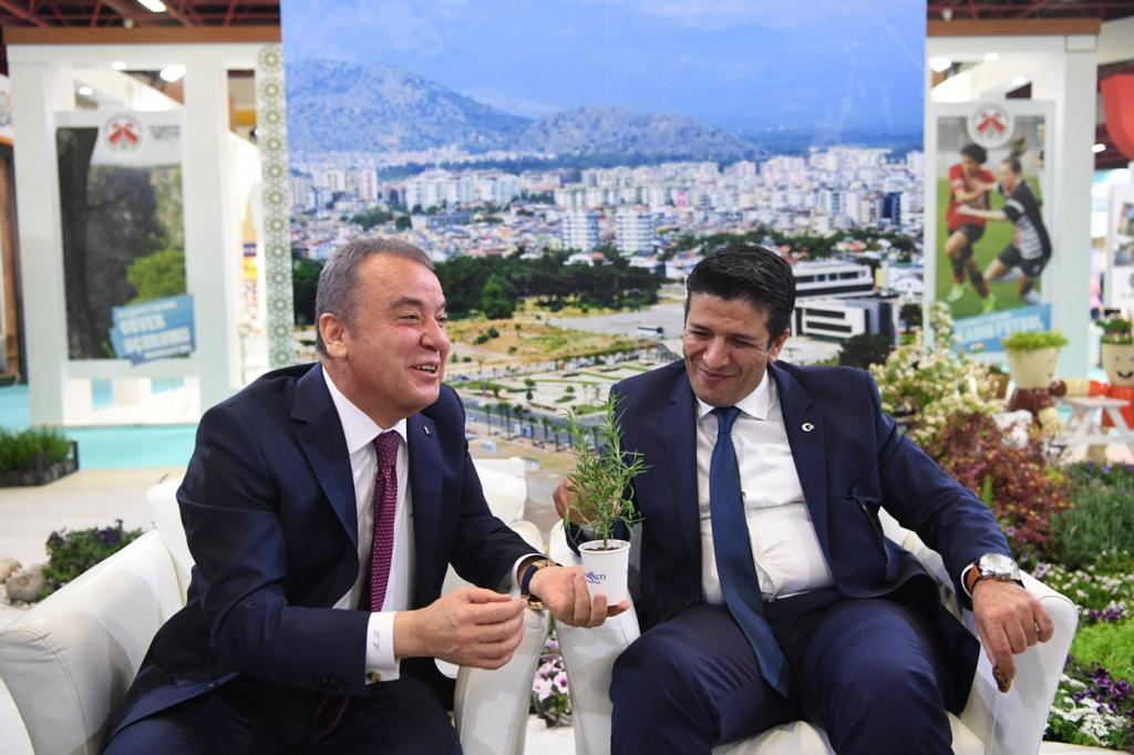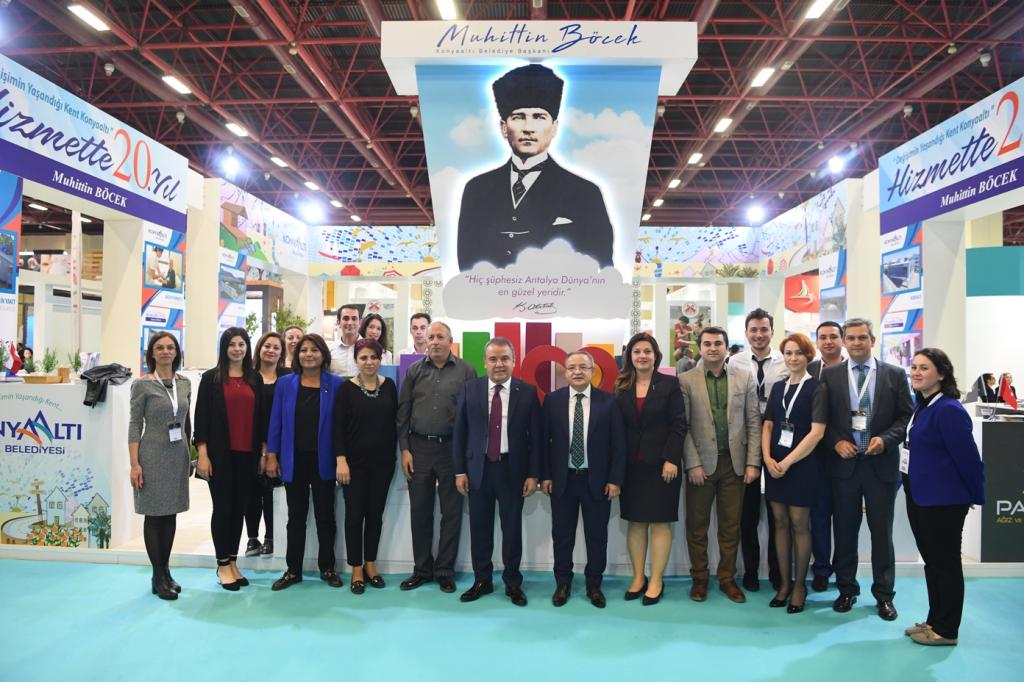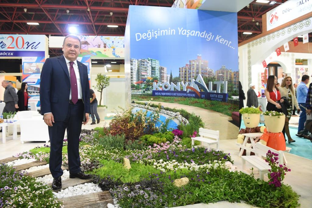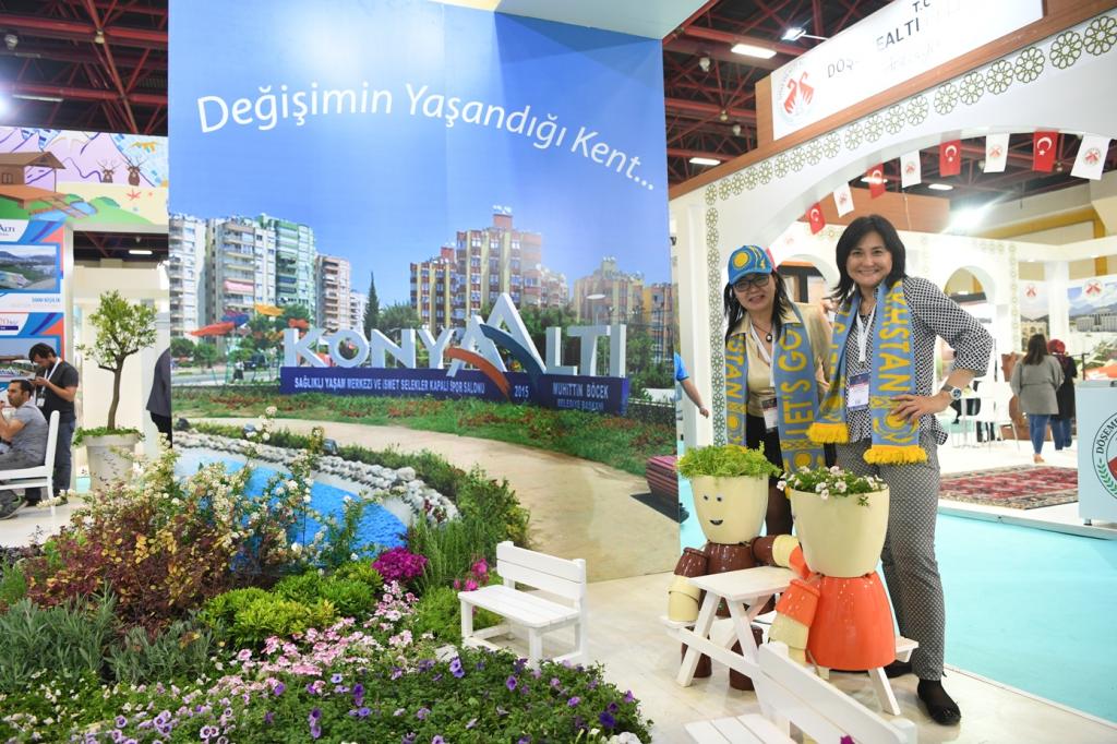 Hestourex Dünya Sağlık, Spor, Alternatif Turizm Fuarı ve Kongresi’nde Konyaaltı Belediyesi standı yoğun ilgi görüyor. Konyaaltı Belediye Başkanı Muhittin Böcek, standı ziyaret eden misafirlerle tek tek ilgilendi. Konyaaltı Belediye standını, Döşemealtı Belediye Başkanı Turgay Genç, İbradı Belediye Başkanı Serkan Küçükkuru, Kemer Belediye Başkanı Mustafa Gül ve çok sayıda ziyaretçi gezdi. Stant içerisinde çiçek bahçesini andıran yeşil dokulu alan yerli ve yabancı ziyaretçilerin ilgi odağı oldu. Ziyaretçiler bol bol fotoğraf çektirdi. Konyaaltı Belediye Başkanı Muhittin Böcek’te standa gelen misafirlere biberiye fidesi hediye etti.