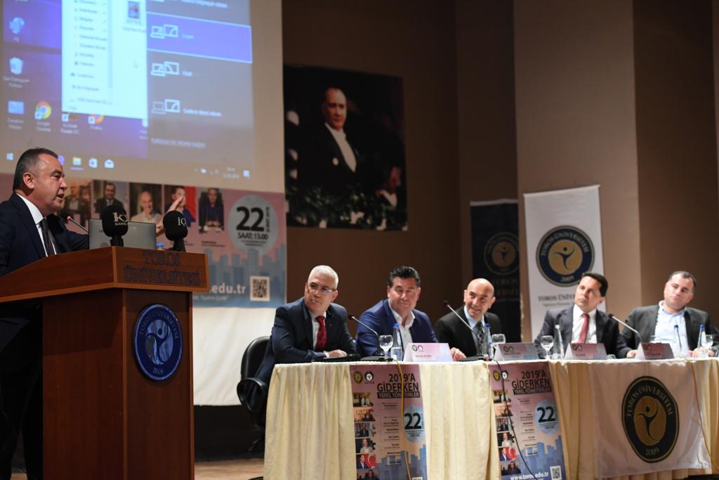 Konyaaltı Belediye Başkanı Muhittin Böcek, Mersin Toros Üniversitesi Kentleşme ve Yerel Yönetimler Uygulama ve Araştırma Merkezi (KEYAM)’nin davetlisi olarak “2019’a Giderken Yerel Yönetimler” paneline konuşmacı olarak katıldı. Panelde konuşmacı olarak Ankara Büyükşehir Belediyesi’nin eski başkanı Murat Karayalçın, Bursa Nilüfer Belediye Başkanı Mustafa Bozbey, Ankara Çankaya Belediye Başkanı Alper Taşdelen, İzmir Seferihisar Belediye Başkanı Tunç Soyer ve Muğla Bodrum Belediye Başkanı Mehmet Kocadon’da yer aldı. Öğrencilerin büyük ilgi gösterdiği paneli Cumhuriyet Halk Partisi (CHP) Parti Meclis Üyesi Fikri Sağlar, CHP Mersin İl Başkanı Adil Aktay ve çok sayıda davetli izledi.