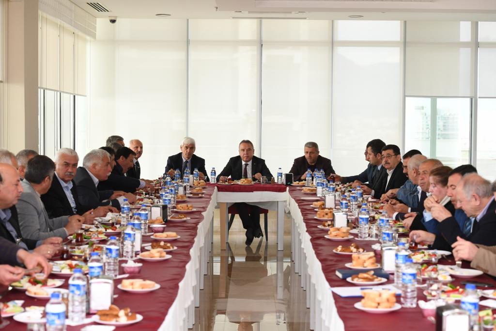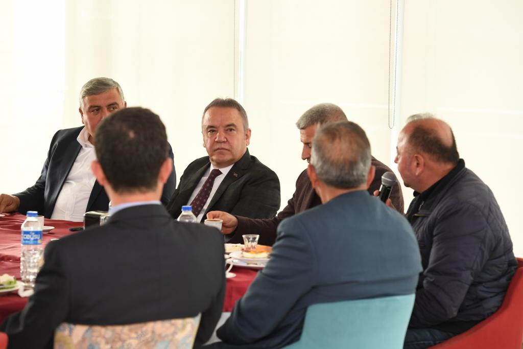 Mahalle muhtarlarının sorunlarını bir bir dinleyen Başkan Muhittin Böcek, birim müdürleriyle birlikte bu sorunlara çözüm aradı. Antalya Muhtarlar Derneği Başkanı Nazif Alp, Konyaaltı Muhtarlar Derneği Başkanı Faruk Kıldıran konuşmalarında Başkan Böcek’e hizmetlerinden ötürü teşekkür etti. Muhtarlar geleneksel hatıra fotoğrafı çektirmeyi de ihmal etmedi.