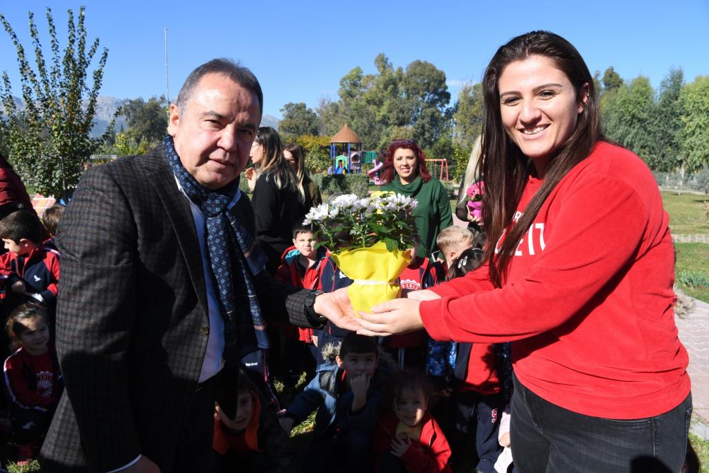 Başkan Böcek, 24 Kasım Öğretmenler Günü’yle ili olarak da Sınav Koleji Anaokulu’nda görevli öğretmenlere çiçek vererek bu özel günlerini kutladı.