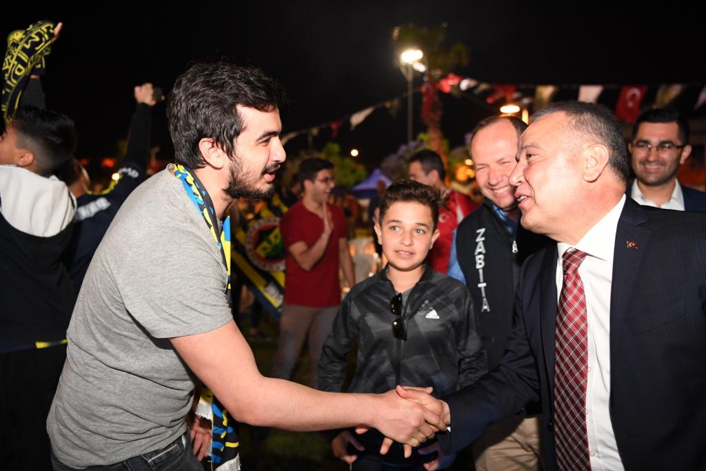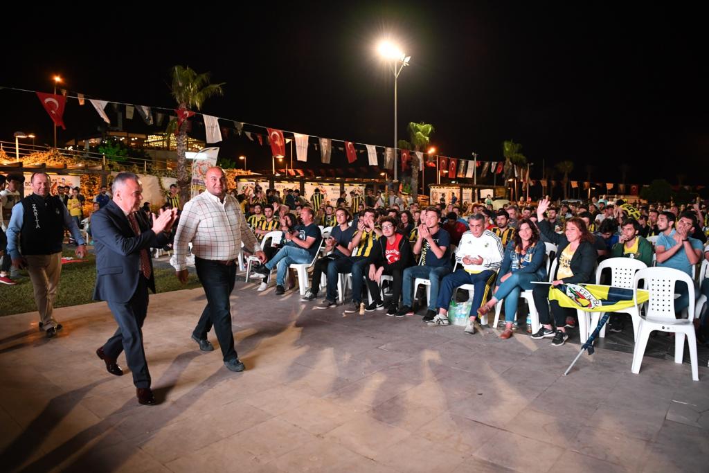 Açık alanda dev ekranda maç izlemenin keyfini yaşayan taraflar, Başkan Muhittin Böcek’e bu jestinden ötürü teşekkür etti. Başkan Böcek ise konuşmasında Fenerbahçe’yi tebrik ederek, “Bu coşkuyu Konyaaltı’nda yaşamak isteyen vatandaşların dev ekran talebini yerine getirdik. Vatandaşlarımızı kıramazdık. Maçı birlikte izledik. Türk takımımızın Avrupa’daki bu önemli başarısına birlikte tanıklık ettik. Gururlandık.” dedi.
