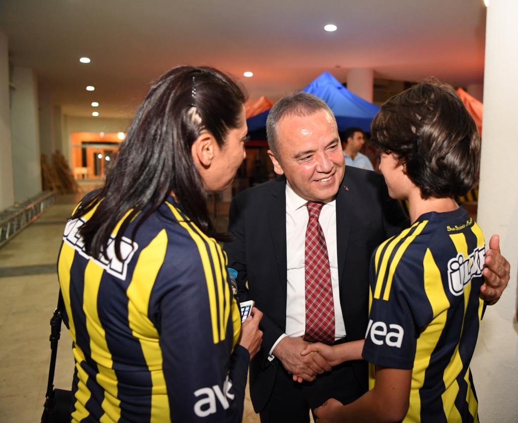 Fenerbahçe ile Olympiakos arasında oynanan Avrupa’nın en büyük kupası olan Euroleague Final Four final karşılaşması için dev ekran isteyen taraflara sosyal medya hesabından müjde veren Konyaaltı Belediye Başkanı Muhittin Böcek, Belediye Hizmet Binası önüne dev ekran kurdurttu. Tarihi maçı izlemek isteyen vatandaşlar Konyaaltı Belediyesi önüne akın etti. Konyaaltı Belediye Başkanı Böcek’te maçı vatandaşlarla birlikte izleyerek taraftarların coşkusuna ortak oldu.