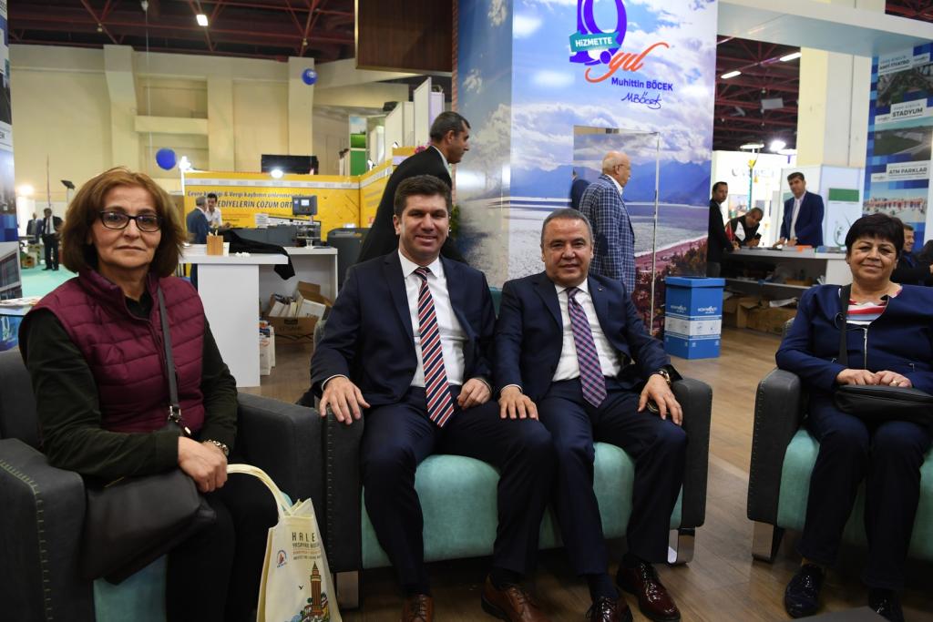 Açılış sonrası protokol heyeti Konyaaltı Belediyesi’nin standını ziyaret etti. Antalya Valisi Münir Karaloğlu, Büyükşehir Belediye Başkanı Menderes Türel, Eskişehir Büyükşehir Belediye Başkanı Yılmaz Büyükerşen, Kepez Belediye Başkanı Hakan Tütüncü, Manavgat Belediye Başkanı Şükrü Sözen, Burdur Belediye Başkanı Ali Orkun Ercengiz, Konyaaltı Belediyesi’nin standında çalışmalar hakkında bilgi aldı. Heyet özellikle ödülle de taç’landırılan Kongre ve Fuar Merkezi ve Yaşlılar Kreşi ve Kadınlar Sanat Lokali Projelerine büyük ilgi gösterdi.