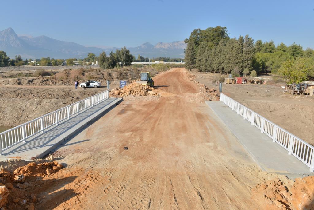 Konyaaltı Belediye Başkanı Muhittin Böcek, Bahtılı ve Çakırlar Mahalleleri’ne alternatif oluşturan yolun önündeki en büyük engel aştıklarını söyledi. Göksu Çayı Köprüsü’nün yapımını bir ay gibi kısa bir süre içinde tamamladıklarını dile getiren Başkan Böcek, sadece yaya ve motosiklet sürücülerinin kullanabildiği köprünün yerine, kazık çakma temel üzerine 14 metre genişliğinde köprü inşa ettiklerini kaydetti. Köprüye olan yeni bağlantı yolların da açıldığını ifade eden Muhittin Böcek, bu yolları kısa süre içinde sıcak asfalt ile kaplayacaklarını bildirdi.