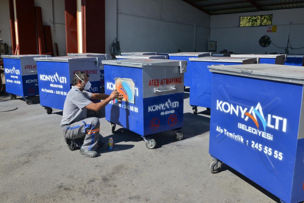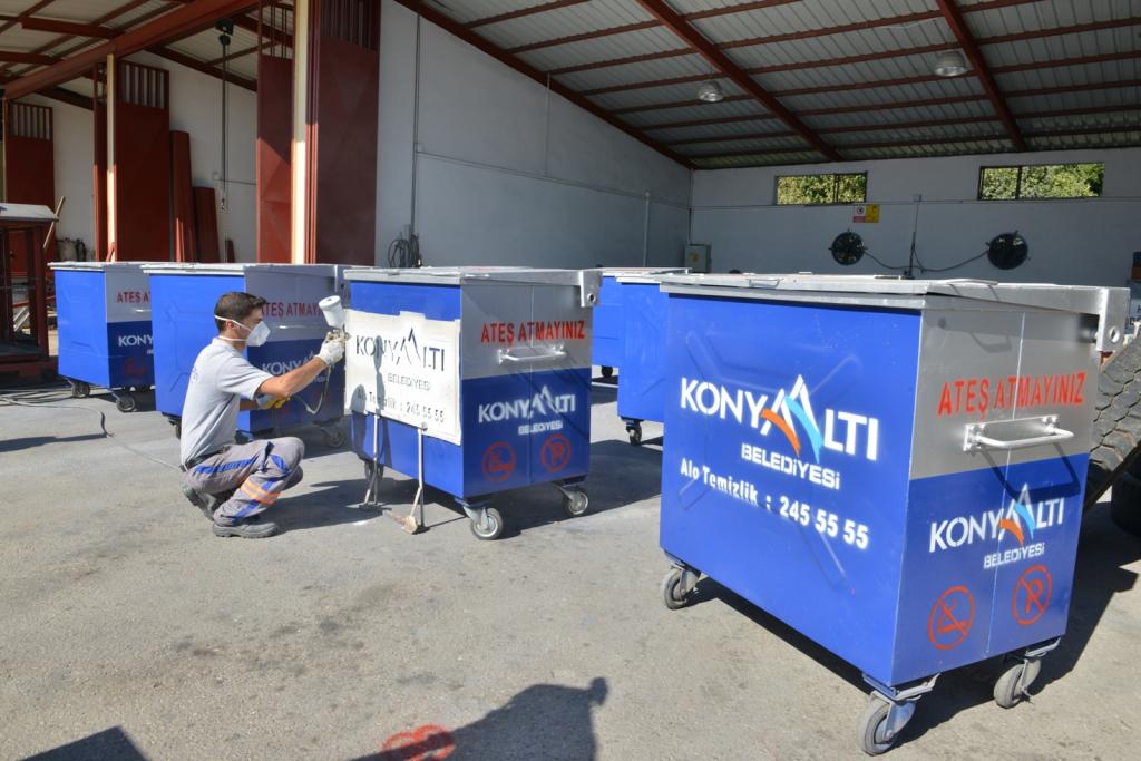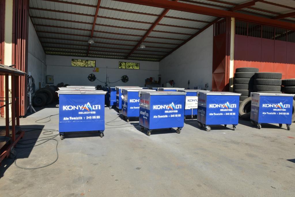 Konyaaltı Belediyesi, “Yer Altı Çöp Konteyneri Projesi”yle, konteynerlerin büyük bir bölümünü yerin altına aldı. Temizlik İşleri Müdürlüğü atölyelerinde üretimi yapılan yer altı konteynerleri, yer üstünde yaygın kullanılanlardan dört kat daha fazla çöp alıyor. Böylece kent sakinleri çöp kokusundan ve görsel kirlilikten de kurtuluyor. Bununla birlikte eskiyen ve kullanılamaz hale gelen çöp konteynerleri de yine bu atölyelerde bakıma alınıyor, onarılıp yenileniyor.