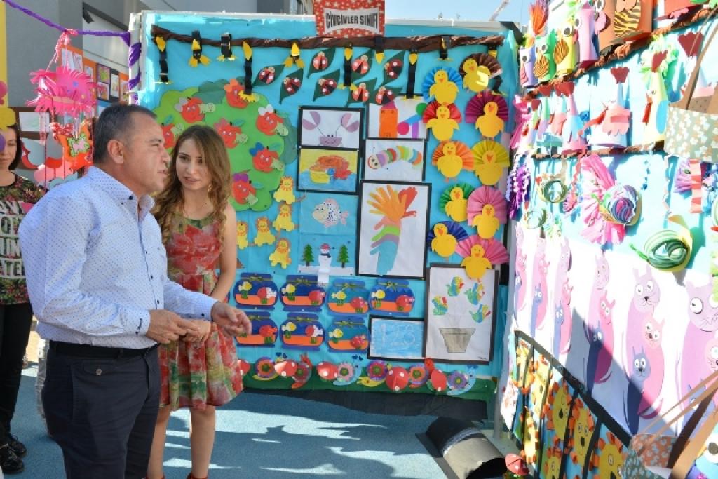 Çocukların yaptığı resimler ve el işi ürünlerin yer aldığı sergi velilerden de büyük beğeni aldı.