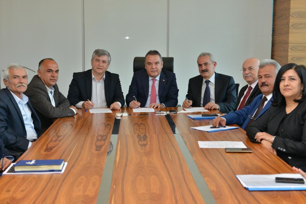 Konyaaltı Belediyesi’nde Belediye İş Sendikası ve Tüm Yerel-Sen ile masaya oturan Konyaaltı Belediye Başkanı Muhittin Böcek, aynı gün içinde iki tarafla da uzlaşarak, çalışanların yüzünü güldürdü. İlk olarak Toplu İş Sözleşmesi için Belediye İş Sendikası Antalya Şube Başkanı Kemal Çavuşoğlu ile bir araya gelen Başkan Muhittin Böcek, 2016-2018 yılı zamlı ücretleri belirleyen sözleşmeye imza attı.
