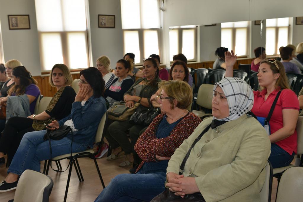 Panele konuşmacı olarak katılan Avukat Zelal Şengüler, özellikle evden uzaklaştırma, mal paylaşımı ve miras konularında merak edilenleri cevapladı. Şengüler, eşlerin 2002 yılından sonra edindiği malların çiftlerin ortak malı olarak kabul edildiğini kaydetti. Ziynet eşyalarıyla ilgili soruya, “Ziynet kadına aittir. Altın, gümüş fark etmez.” diyen Şengüler, “Eşinizden size hediye olarak araba almasını değil altın almasını isteyin” diye de konuya esprili bir yaklaşım getirdi.