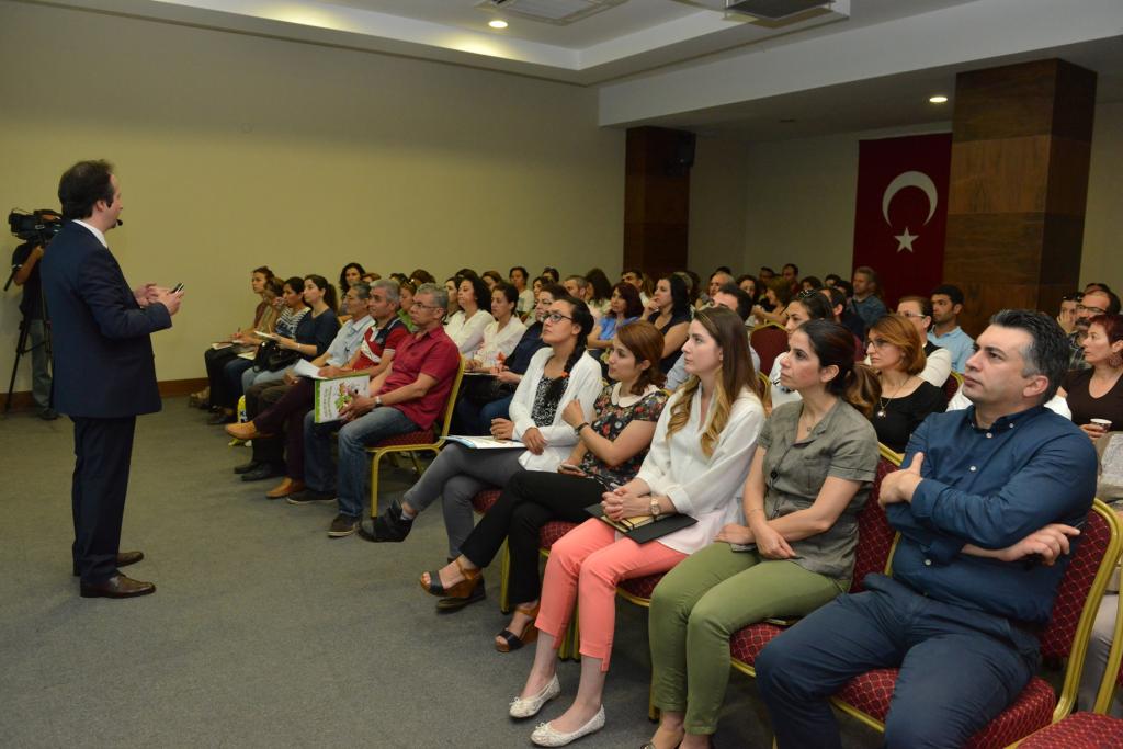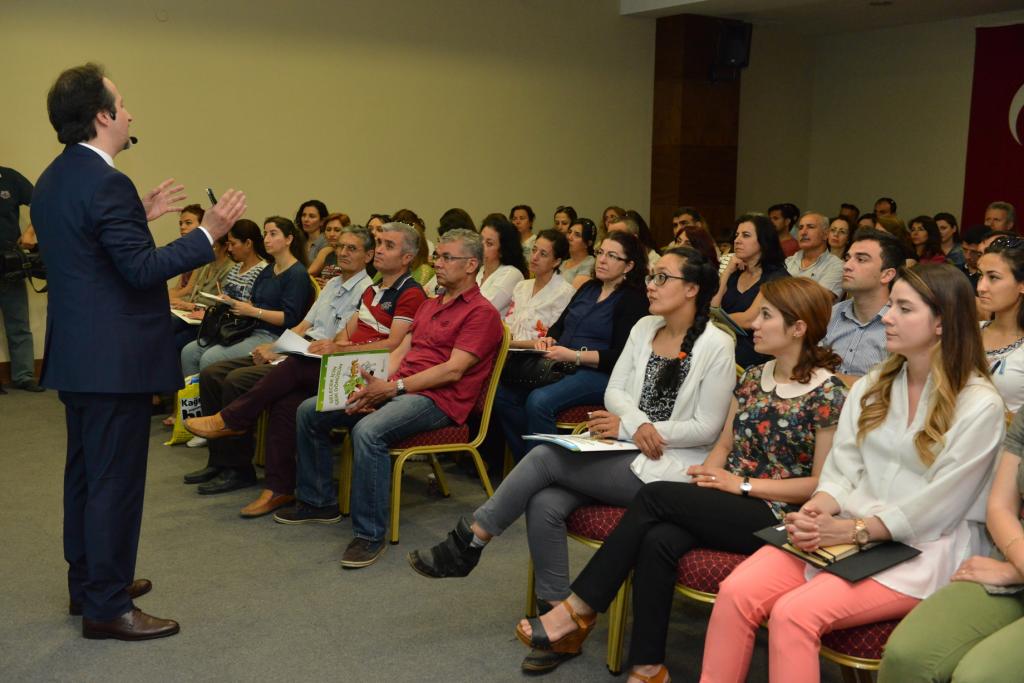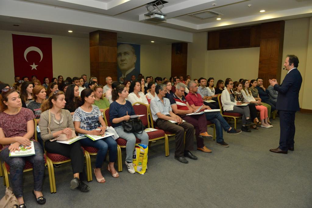Konyaaltı Belediyesi Ahmet Tunç Salonu’nda düzenlenen “Gelecek İçin Geri Dönüşüm” konulu eğitim seminerine ilkokul ve ortaokul öğretmenleri katıldı. Öğretmenlerden destek beklediklerini söyleyen ÇEVKO Eğitim Şefi Murat Anaç; "Dünya katmanları üzerinde toprak sadece 25- 30 santimetreden oluşuyor. Toprak bizler gibi canlı bir organizma. Toprağı yeniden üretmek ya da yenilemek gibi bir şansımız yok. O yüzden bizlerin önceliği toprağı korumak olmalı. Bu yüzden tek yapmamız gereken şey, evsel atık ile geri dönüştürülebilen atıklarımızı farklı yerde toplamak. Bunu da gelecek nesillere aşılamak." diye konuştu.