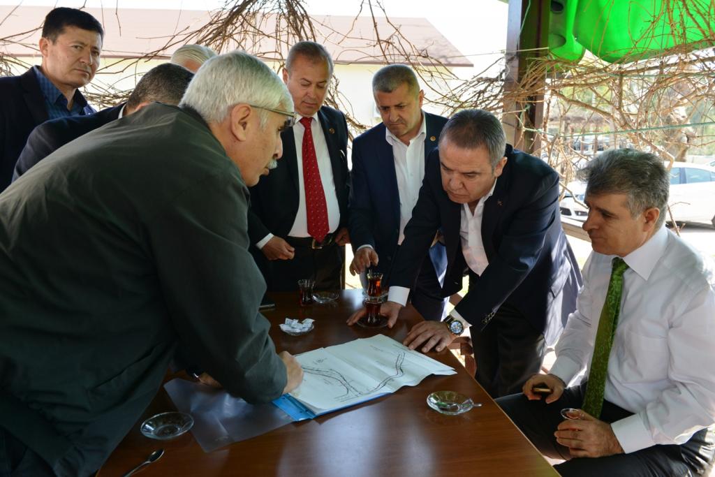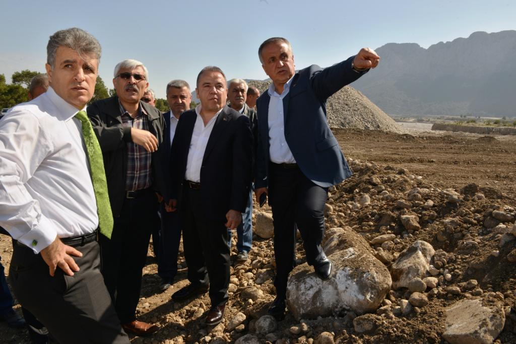 Boğaçayı’nın Çakırlar Mahallesi sınırı boyunca uzanan yol açma çalışmaları tüm hızıyla devam ediyor. Konyaaltı Belediye Başkanı Muhittin Böcek, Konyaaltı Belediyesi ve Devlet Su İşleri Bölge Müdürlüğü işbirliğiyle yürütülen yol sedde çalışmalarını, Konyaaltı Kaymakamı İbrahim Keklik, Konyaaltı Belediyesi Meclis Üyeleri Şafak Otuzaltı, Durali Kolpak ve mahalle muhtarlarıyla birlikte yerinde inceledi.