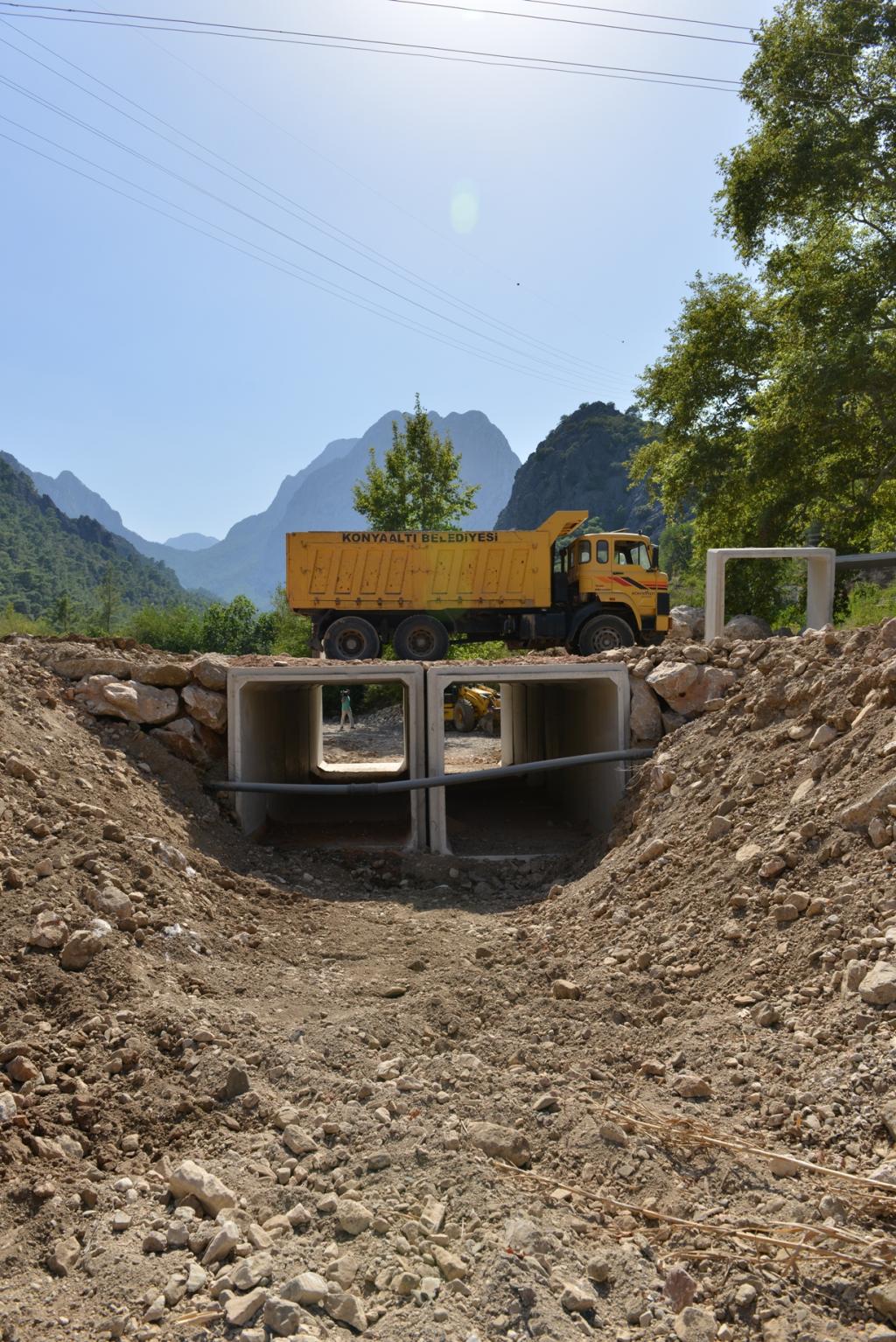 Konyaaltı Belediyesi çalışmalarını aralıksız sürdürüyor. Yol açma, genişletme ve asfaltlama çalışmalarına devam eden Konyaaltı Belediyesi, aşırı yağışlar nedeniyle sulama kanalı ve dere yataklarında zaman içinde ihtiyaç oluşan noktalarda, menfez çalışması başlattı.
