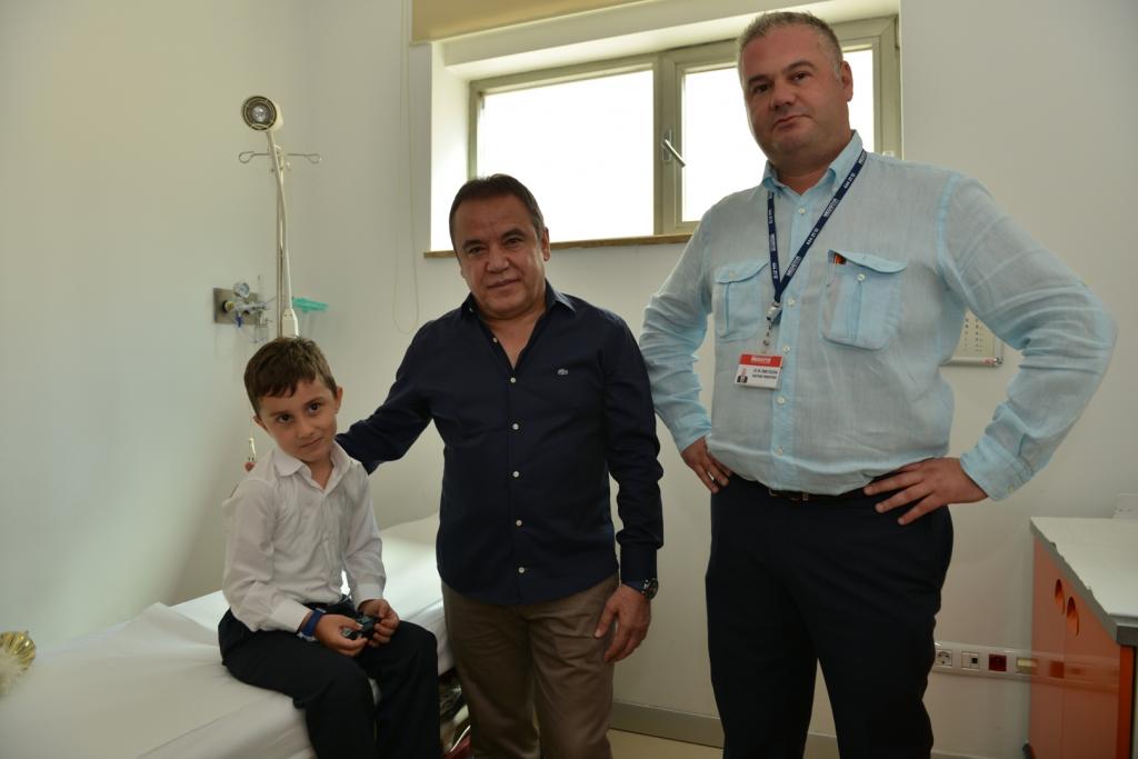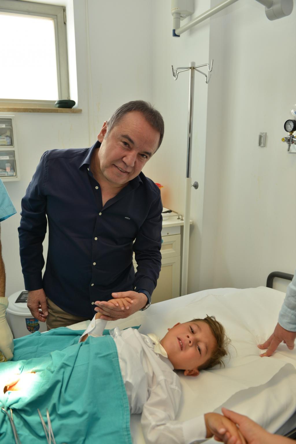 Konyaaltı Belediyesi’nin geleneksel 20’nci Sünnet Şöleni kapsamında yaşları 4 ile 12 arasındaki 106 çocuk, gruplar halinde sünnet oluyor. Konyaaltı Belediye Başkanı Muhittin Böcek, özel bir hastanede gerçekleştirilen sünnet işlemlerinde çocukları yalnız bırakmadı. Başkan Böcek, ilk grupta yer alan Ersin Efe Konat ve Alettin Talha Ünal isimli çocuklara, o stresli anlarında ellerinden tutarak destek oldu.