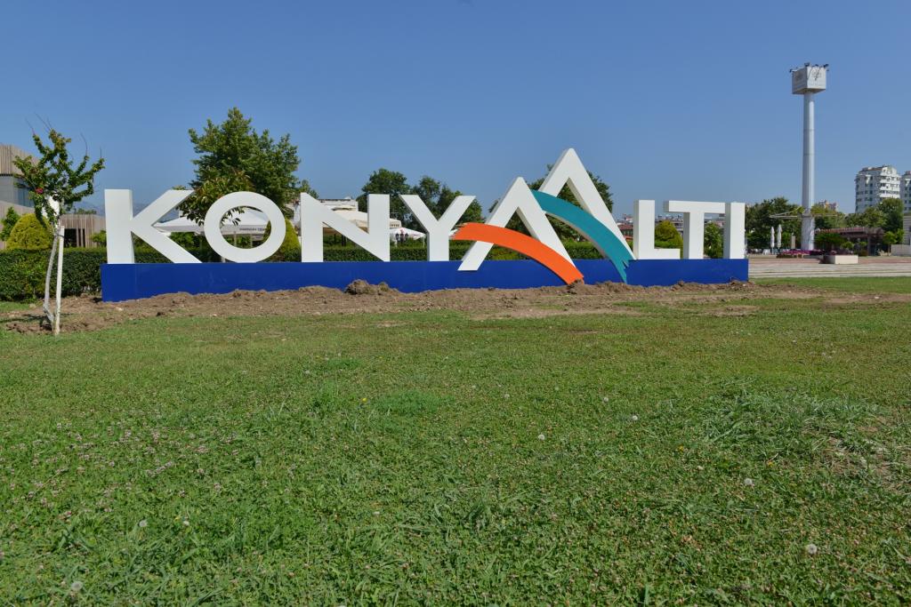 Konyaaltı’nda her mahalleye modern parklar inşa eden, mevcut parkları ise modernize ederek yenileyen Konyaaltı Belediyesi, küçük dokunuşlarla da kenti simgeleyen unsurları ön plana çıkarıyor. Geçtiğimiz aylarda "Kamusal Sanat" ismi verilen proje kapsamında, ilçenin çeşitli noktalarına alageyik figürleri yerleştiren, elektrik trafolarını ise “kağıt kaplama” yöntemiyle birer bibloya dönüştüren Konyaaltı Belediyesi, şimdide Konyaaltı Kent Meydanı ile Sağlıklı Yaşam Adası girişine büyük puntolarla oluşturulan “Konyaaltı” yazısı yerleştiriyor.