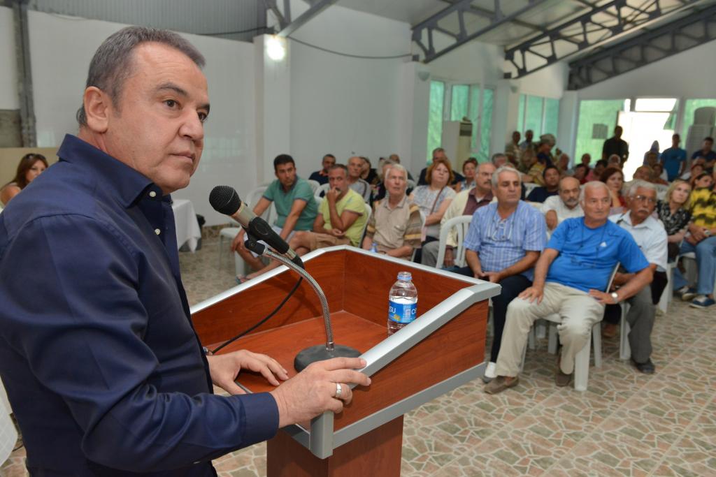 Konyaaltı Belediye Başkanı Muhittin Böcek, 2014 Yerel Seçimleri’yle birlikte Konyaaltı Belediyesi’nin bir mahallesi olan Saklıkent’e değim yerindeyse çıkarma yaptı. Konyaaltı Belediyesi olarak yapacakları yatırımlar için kendilerine yer tahsis edilmesini isteyen Başkan Böcek, konuyu görüşmek üzere bir araya gelen Beydağları Saklıkent Konut Yapı Kooperatifi’nin Olağanüstü Genel Kurul Toplantısı’na katıldı. Başkan Muhittin Böcek, Belediye Başkan Yardımcıları ve ilgili birim müdürleriyle birlikte yapacakları yatırımlar hakkında kooperatif üyelerini bilgilendirdi.