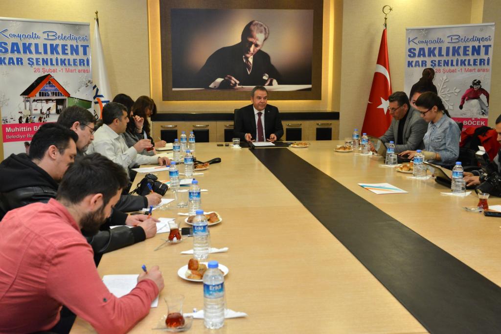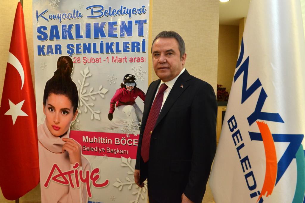 Düzenlediği basın toplantısı ile 1900 metre yüksekliğindeki Saklıkent Kayak Merkezi’nde "1.Konyaaltı Belediyesi Saklıkent Kar Şenlikleri ve Kayak Yarışları" düzenleyeceklerini dile getiren Başkan Böcek, Saklıkent’in 30 Mart Yerel Seçimleri sonrası Konyaaltı Belediyesi’nin bir mahallesi olduğunu ve bu nedenle de mahallelerine kar’ın düştüğü ilk yılı coşkuya dönüştürmek istediklerini söyledi. Konyaaltı Belediyesi olarak ulusal ve uluslar arası bir çok etkinliğe ev sahipliği yaptıklarını dile getiren Başkan Böcek, bu kapsamda bu yıl ilki düzenlenecek olan 1.Saklıkent Kar Şenlikleri ve Kayak Yarışları etkinlikleriyle Antalyalıları Saklıkent ile buluşturacaklarını bildirdi.