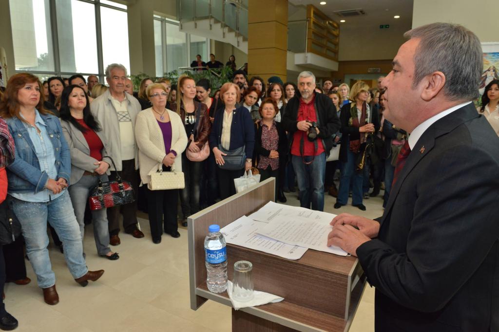 Serginin açılışında konuşan Konyaaltı Belediye Başkanı Muhittin Böcek, ülkemizde kadına yönelik şiddettin her yıl arttığına dikkat çekti. Başkan Böcek, “Atatürk ‘Şuna kani olmak lazımdır ki, dünya üzerinde gördüğümüz her şey kadının eseridir’ demiştir. Kadının ihmal edildiği bir toplumun varlığını sağlıklı bir şekilde sürdürmesi mümkün değildir. Kadınlarımızın toplumdaki yeri ve görevleri konusunda bir birey olarak kişiliğini kazanması ve toplum içinde hak ettiği yeri alması gerekmektedir. Yarınlarımızı aydınlığa taşıyacak olan gençlerimizi yetiştiren, büyüten kadınlarımız; aslında toplumlar inşa etmektedir.” şeklinde konuştu.