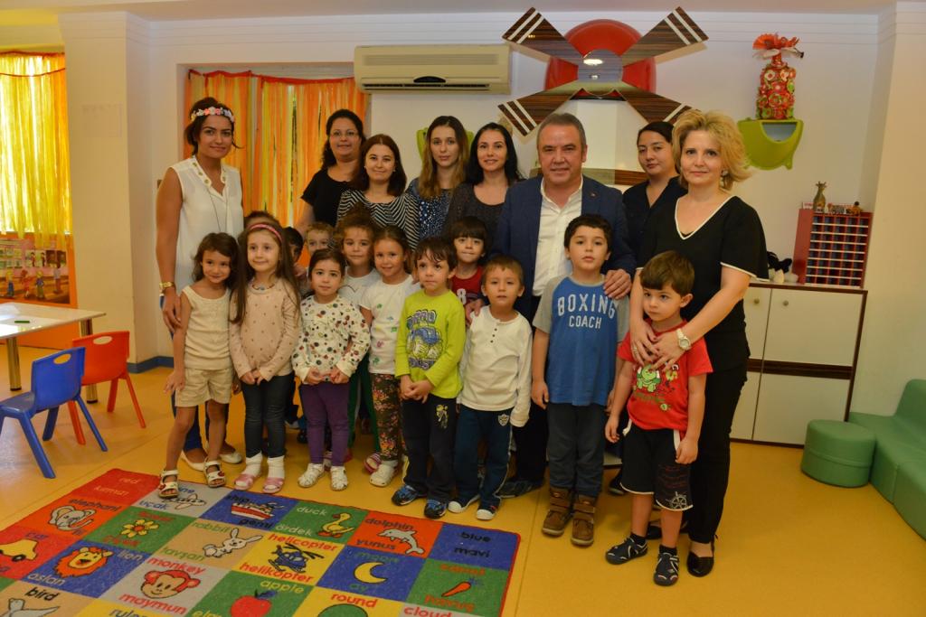 Ayfer Gök ve Alper Duru Anaokullarının ardından geçtiğimiz günlerde düzenledikleri törenle “Çocuk Kreşi Projesi”nin temelini attıklarını ifade eden Muhittin Böcek, bölgede eğitim-öğretim kurumlarının sayısının her geçen yıl arttığına dikkat çekti. Yeni eğitim öğretim yılının ilk haftalarında Jale Teyze Çocukevi Kreşi’ni ziyaret etmek istediklerini dile getiren Başkan Böcek, minik sıralarında boya çalışması yapan 2 ile 6 yaş grubu çocuklarla sohbet etti.